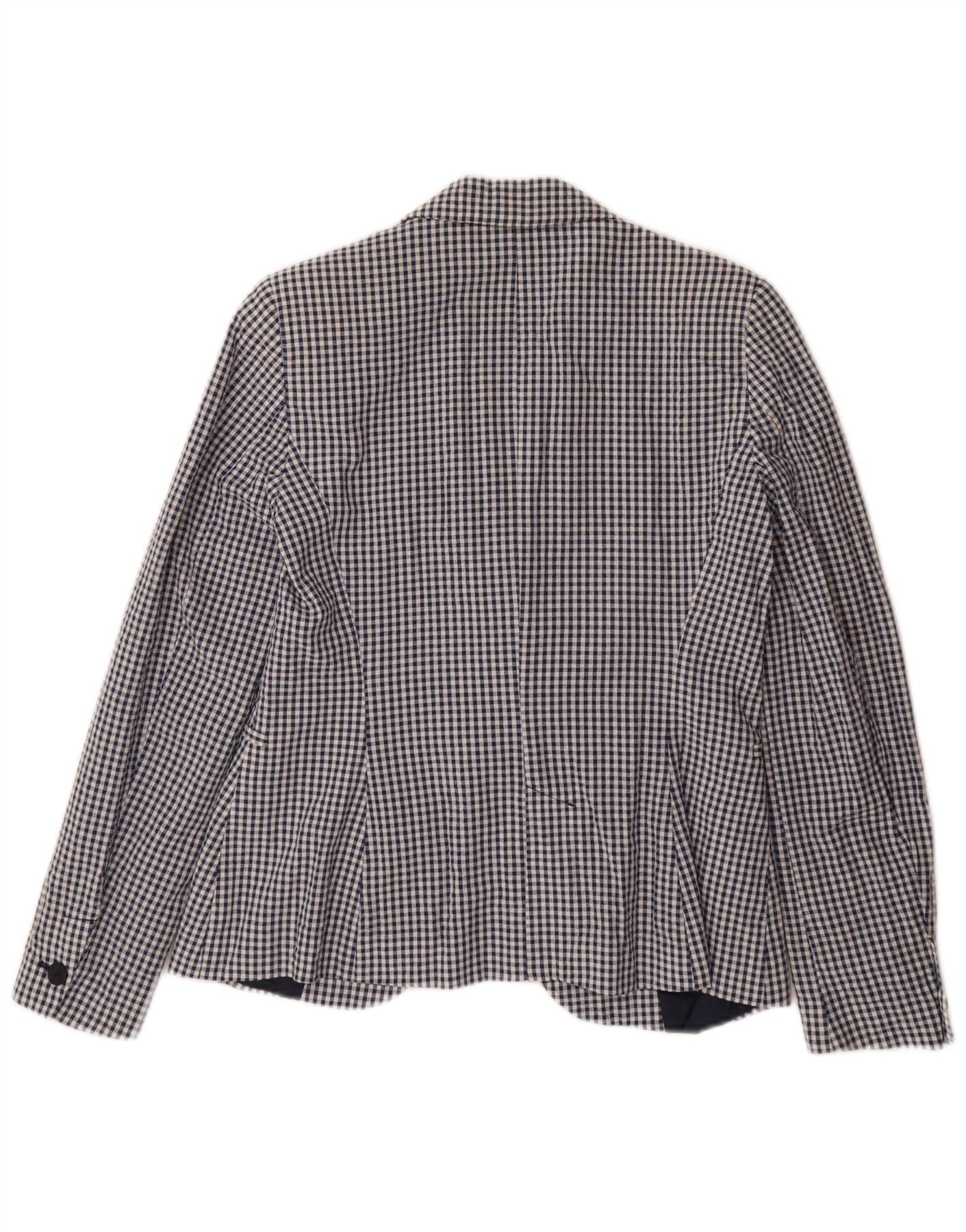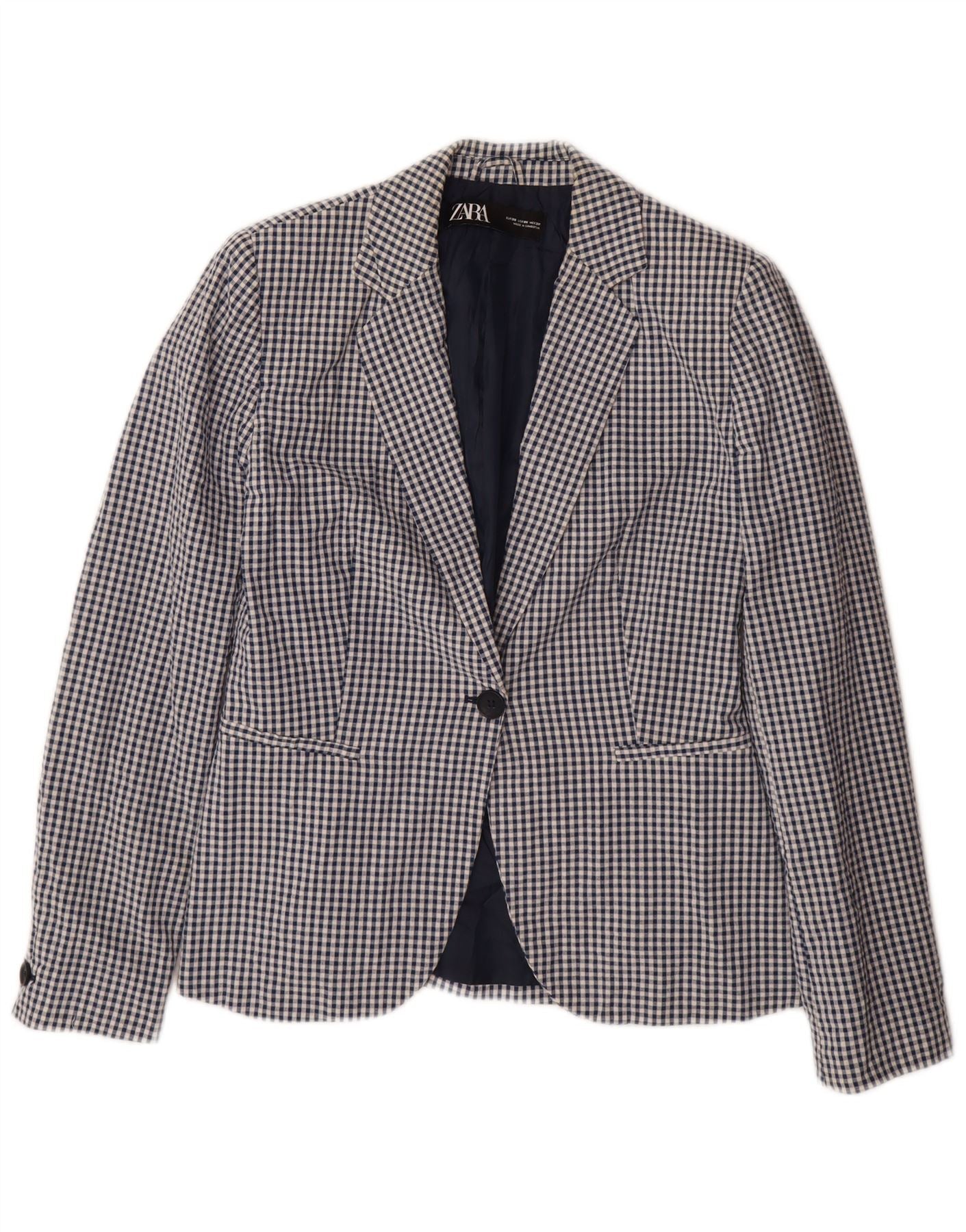ZARA Giacca Blazer a 1 Bottone da Donna EU 38 Piccolo Cotone a quadretti blu