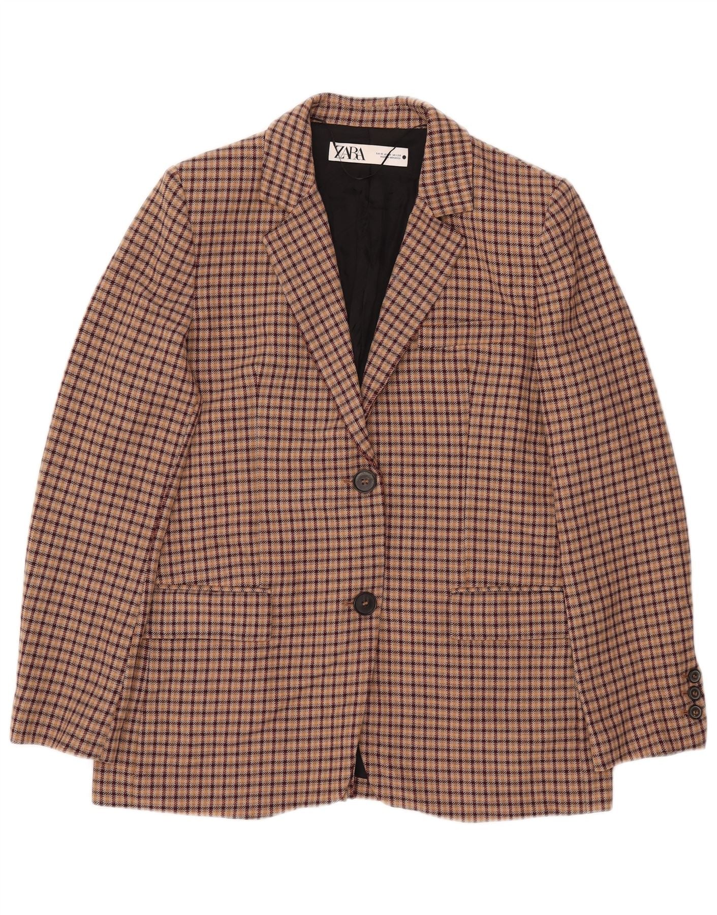 ZARA Giacca Blazer a 2 Bottoni da Donna UK 14 Viscosa a quadri Marrone Medio
