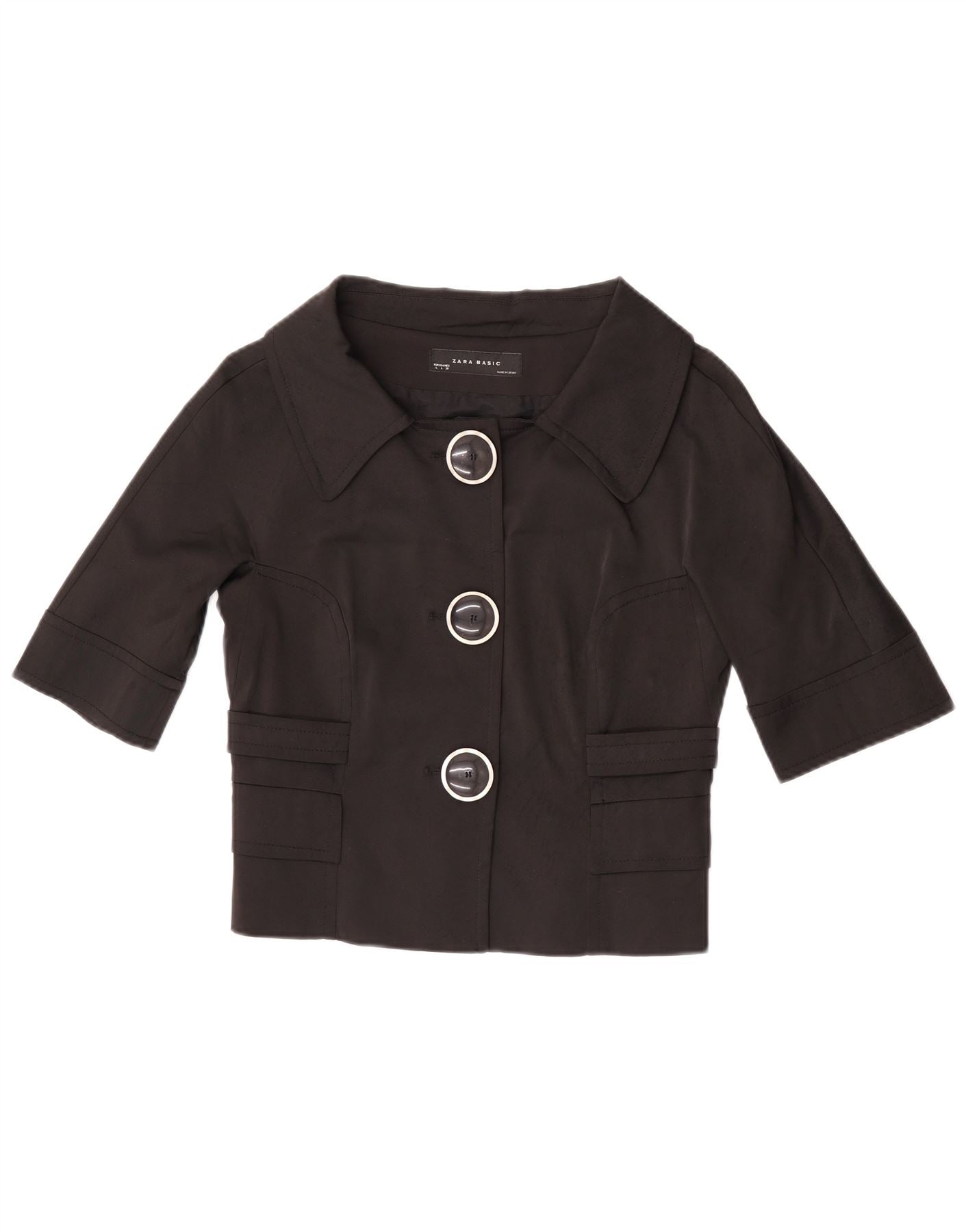 Giacca Bolero da donna Zara con maniche a 3/4 e 3 bottoni UK 14 grande cotone nero