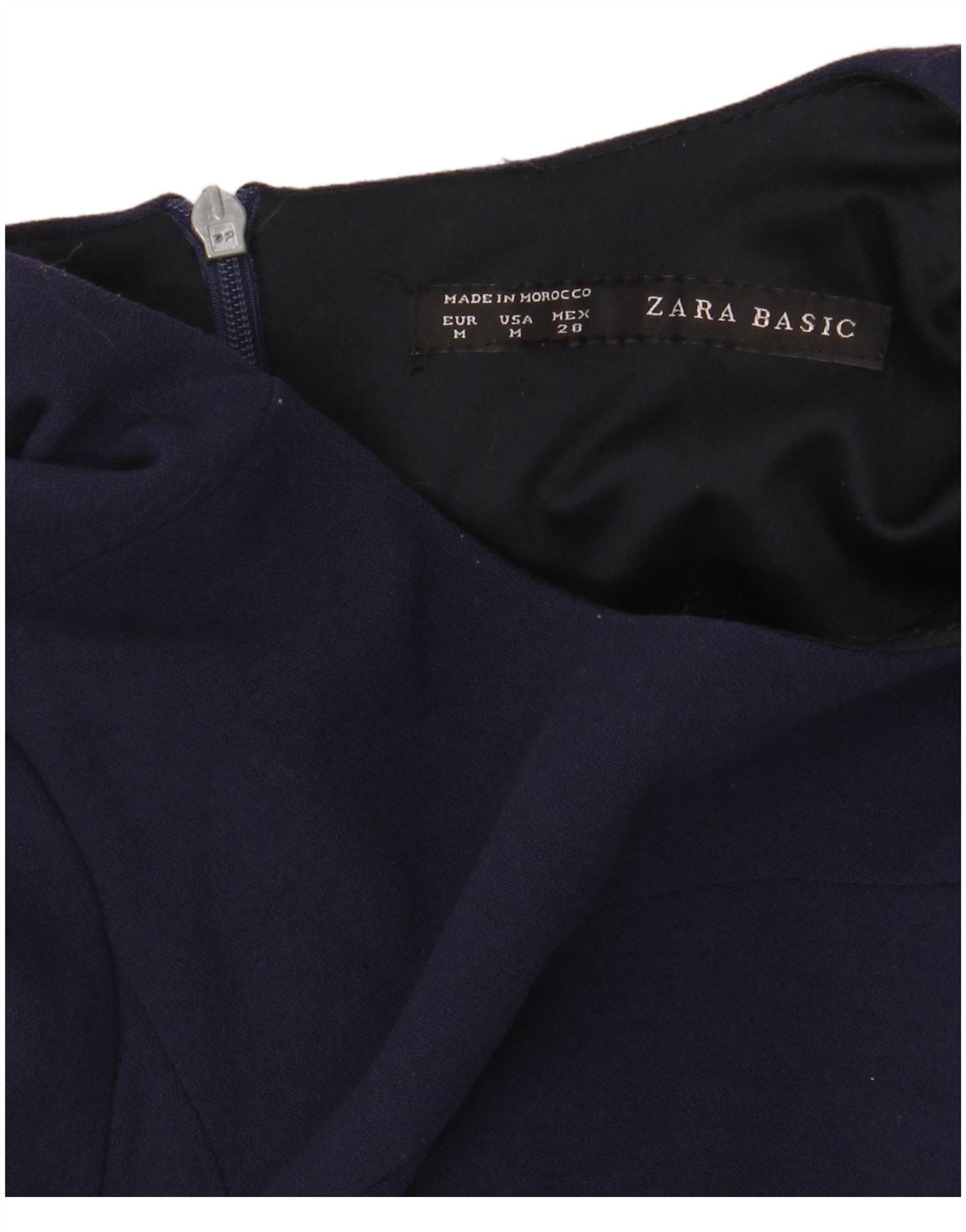 - Descrizione dell'IA: Questo abito a trapezio da donna Zara è realizzato in tessuto liscio blu navy. Presenta un classico scollo rotondo ed eleganti maniche a 3/4. Il corpetto è aderente e sfocia in una vita leggermente arricciata. La gonna si allarga dolcemente in una silhouette a trapezio. Una discreta chiusura con zip sul retro garantisce una vestibilità perfetta. Pratiche tasche laterali sono integrate nel design. La vestibilità regolare offre comfort e una forma lusinghiera.