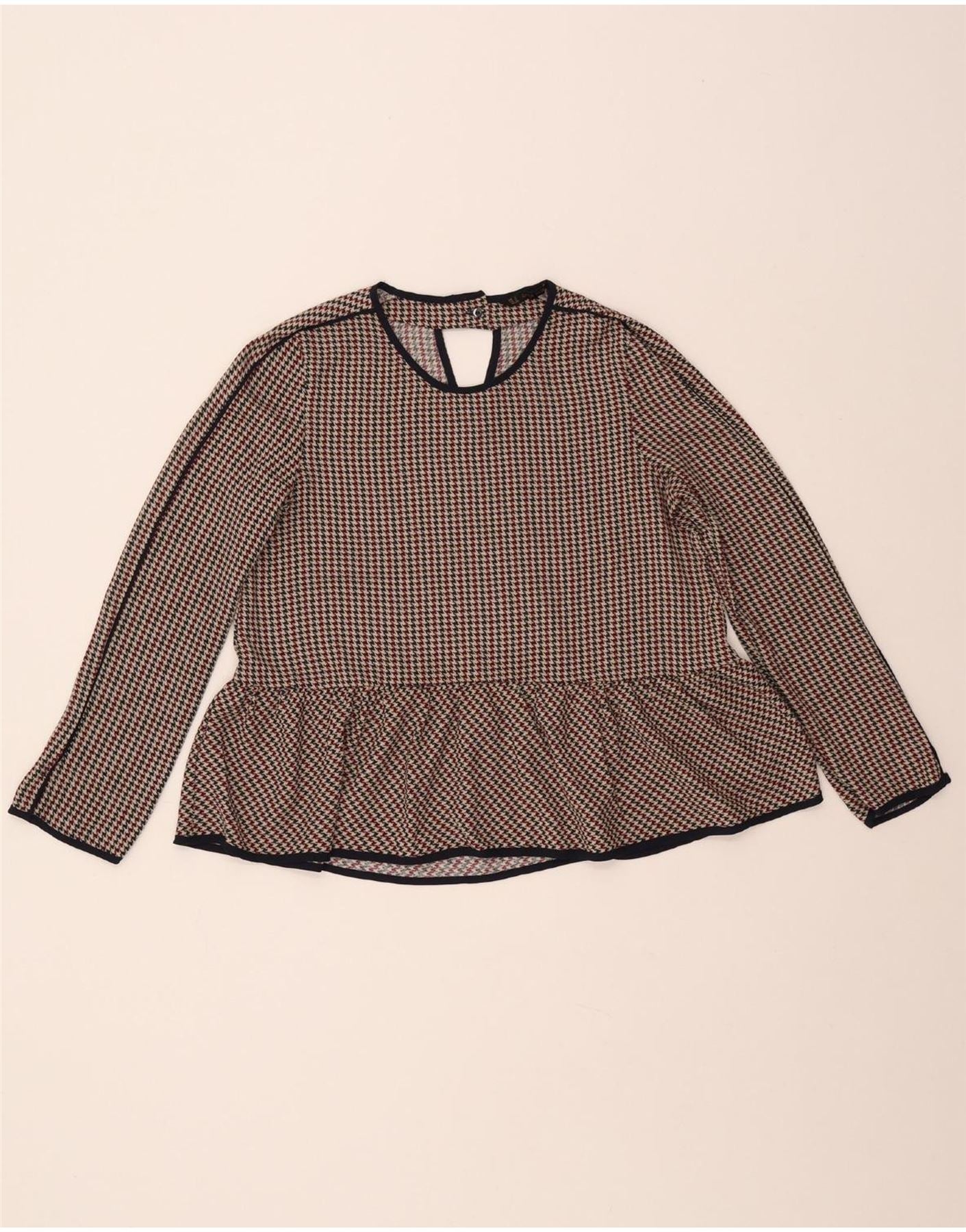 ZARA Camicetta da Donna con Maniche a 3/4 Top UK 10 Piccolo Pied De Poule Multicolore