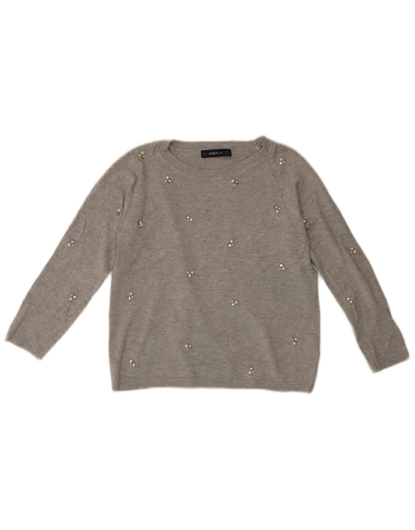 Maglione ZARA da donna con scollo a barca con maniche a 3/4 UK 10 piccolo in viscosa grigia