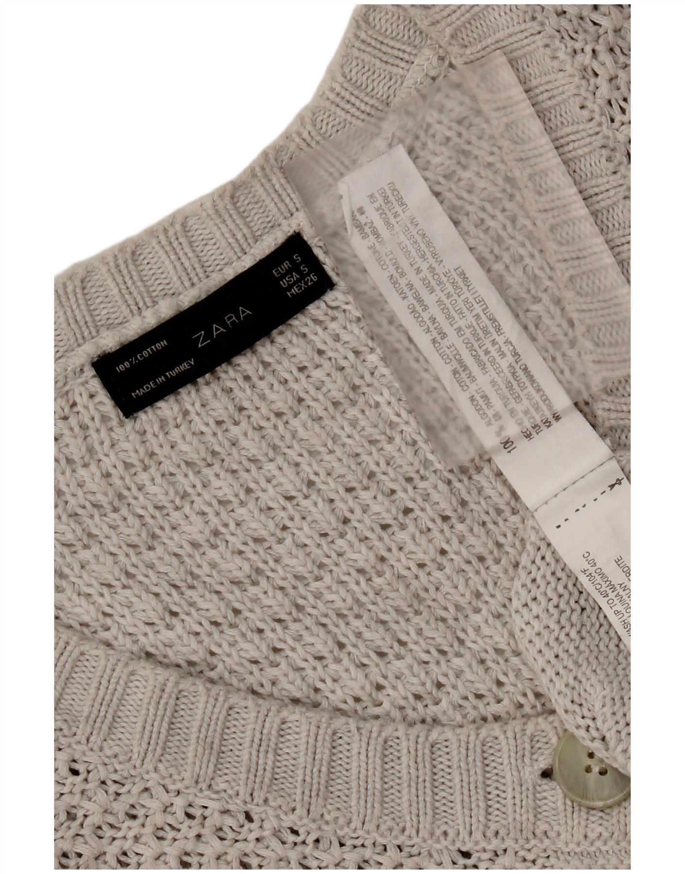 Maglione cardigan con maniche a 3/4 da donna Zara UK 10 piccolo cotone grigio