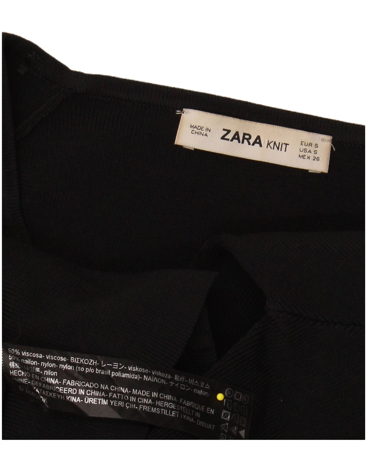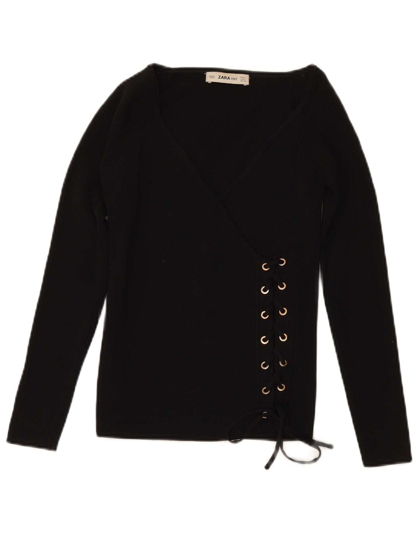 Maglione ZARA da donna con scollo a V e maniche a 3/4 UK 10 piccolo in viscosa nera