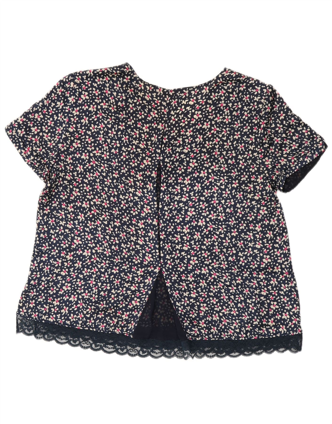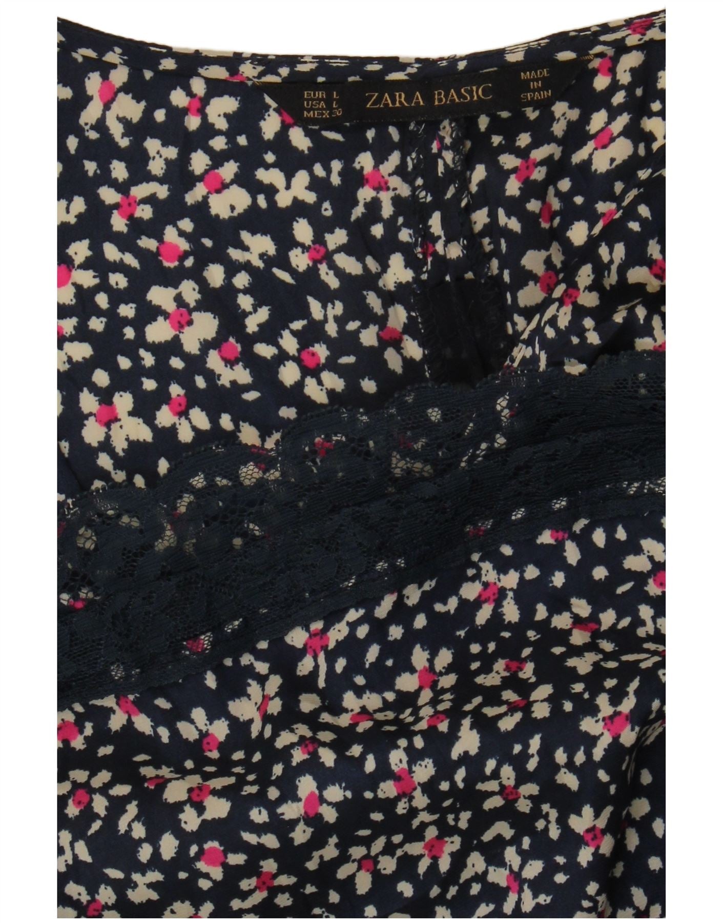 ZARA Camicetta da Donna Top UK 16 Grande Blu Navy Floreale