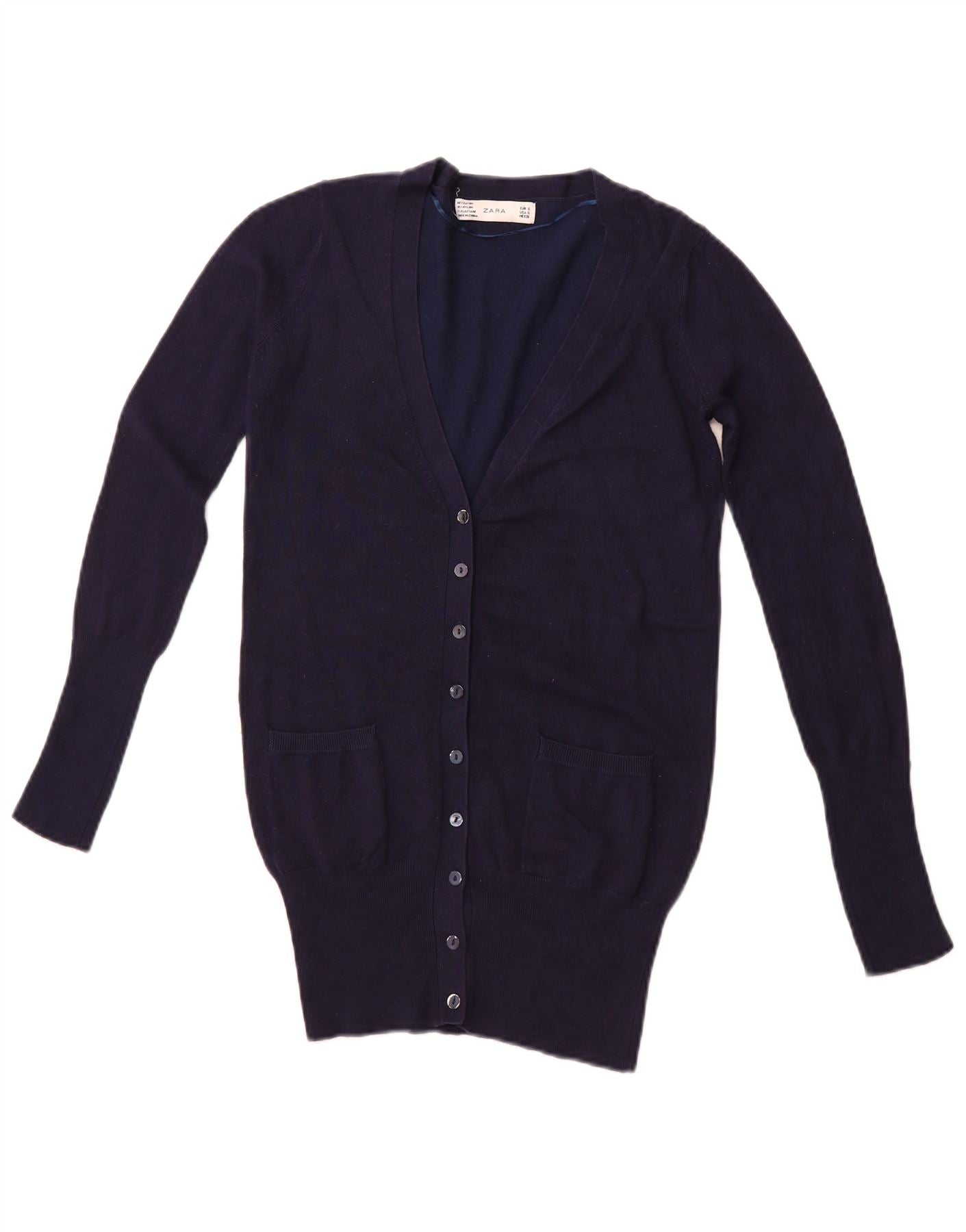 Maglione Cardigan Da Donna ZARA UK 10 Piccolo Rayon Blu Navy