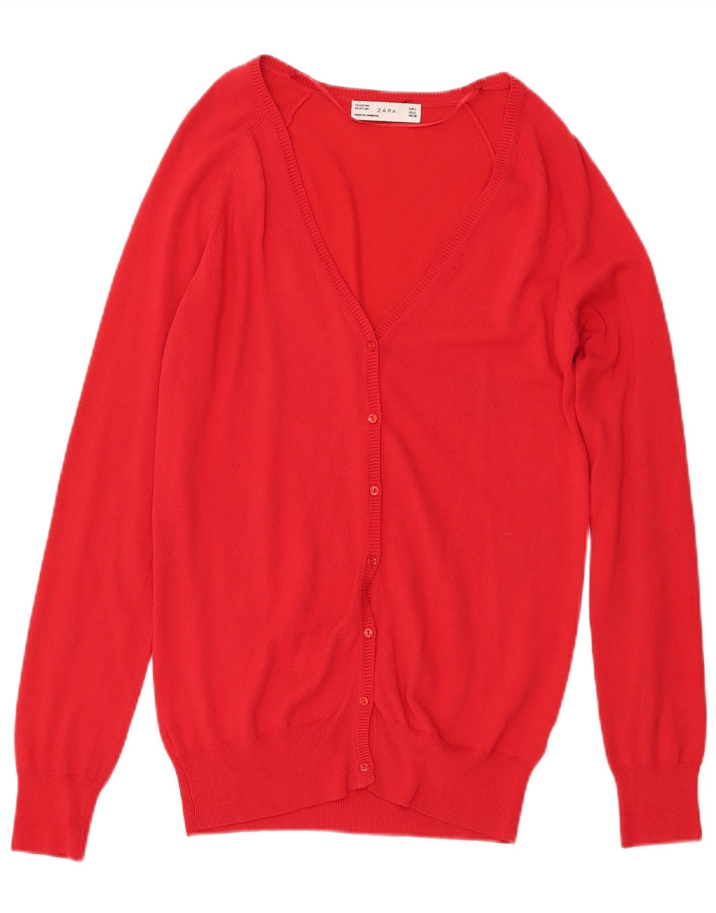 - Descrizione dell'IA: Questo maglione cardigan da donna Zara è realizzato in morbida maglia di nylon di cotone rosso. Presenta un classico scollo a V e un'abbottonatura completa sul davanti. I pulsanti tonali forniscono un accento sottile. Finitura delle maniche lunghe con polsini ordinati. La vestibilità regolare offre una vestibilità comoda. Questo pezzo versatile è perfetto per la stratificazione.