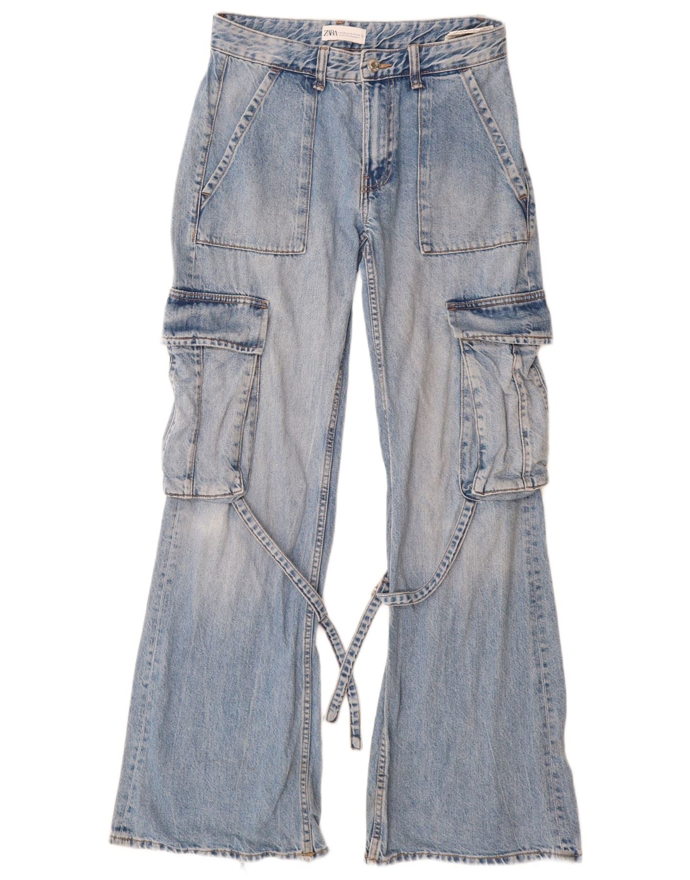 Jeans svasati cargo da donna ZARA EU 34 2XS W24 L32 cotone blu
