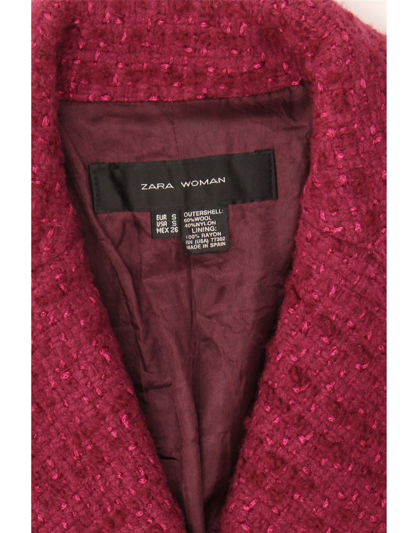 ZARA Womens Crop 1 Button Blazer Jacket UK 8 Small Pink Flecked Wool
