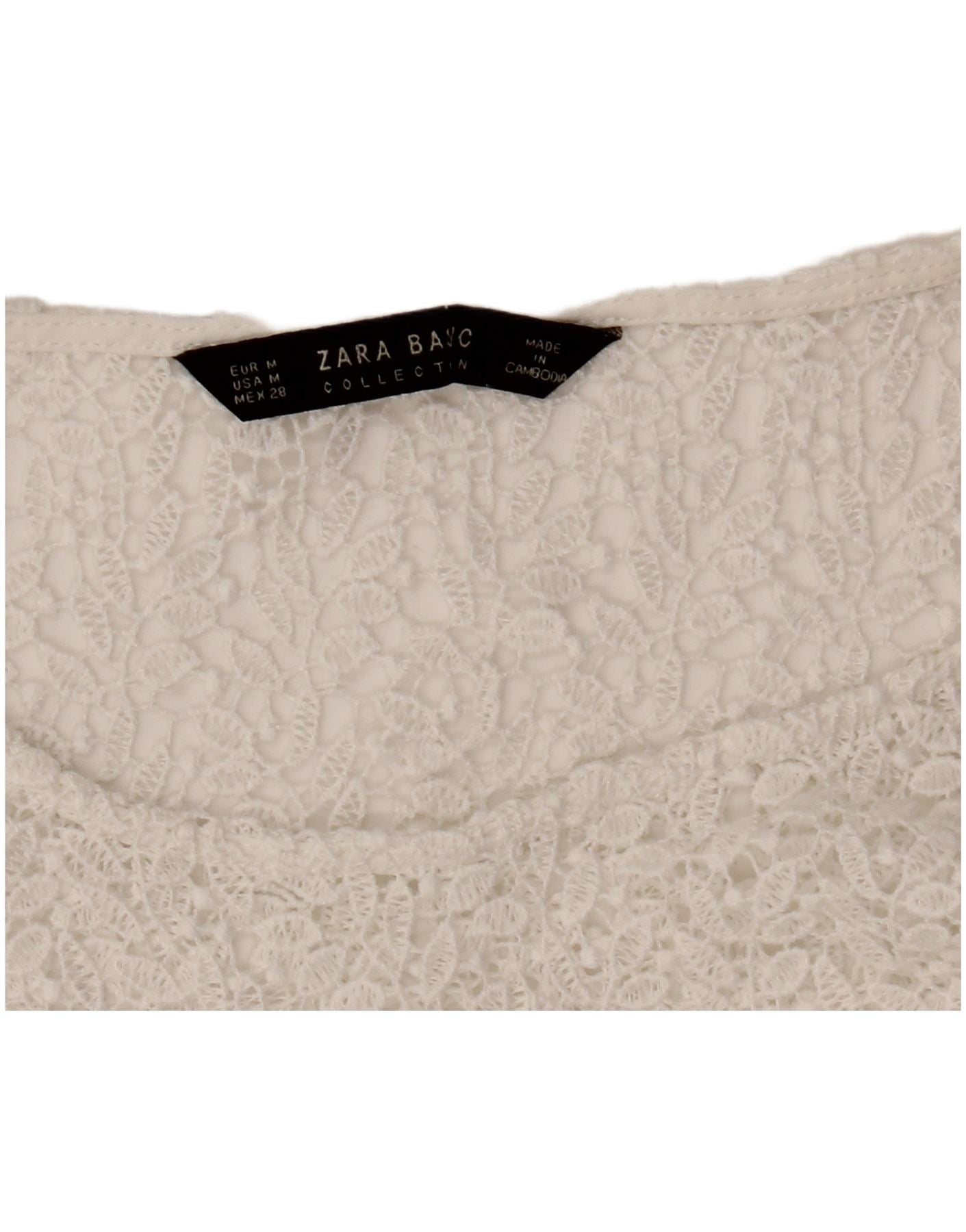 ZARA Camicetta Corta da Donna Top UK 12 Medio Bianco Floreale