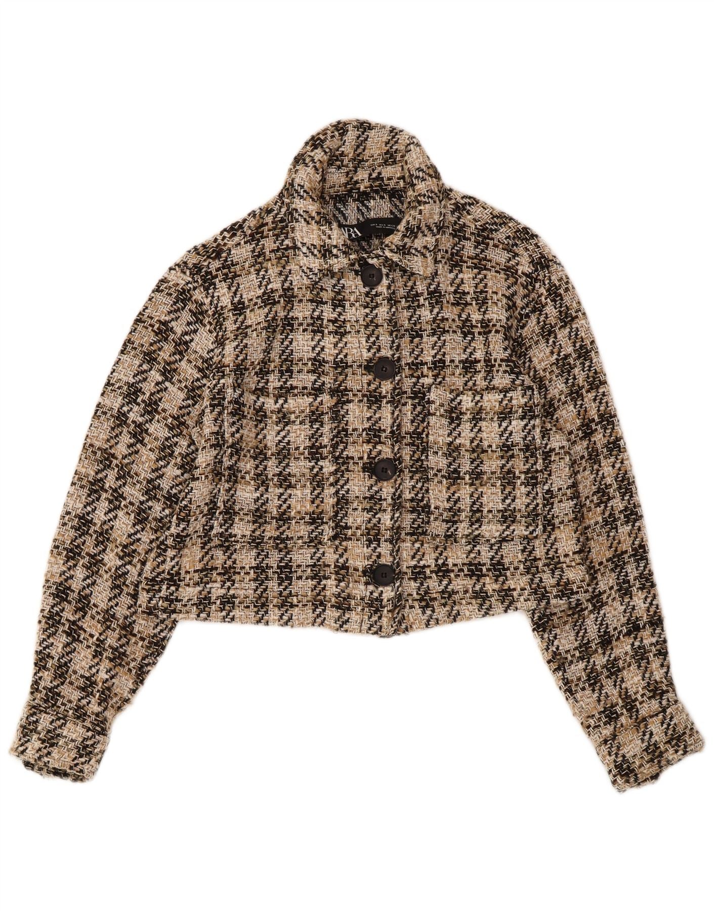 Giubbotto bomber corto da donna ZARA UK 10 piccolo cotone a quadri beige