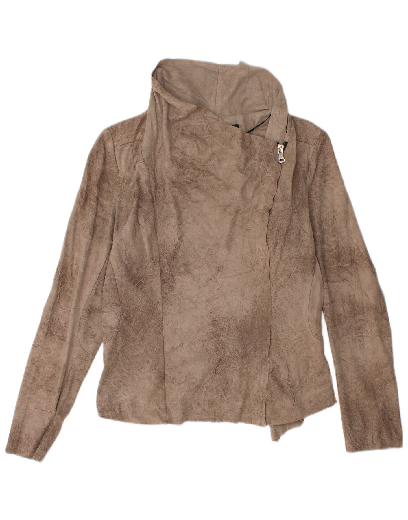 Giubbotto bomber corto da donna ZARA UK 14 grande poliestere marrone tie-dye