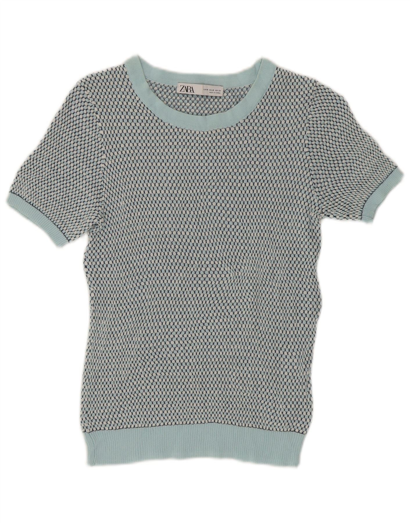 Maglione corto girocollo da donna Zara UK 12 verde medio maculato