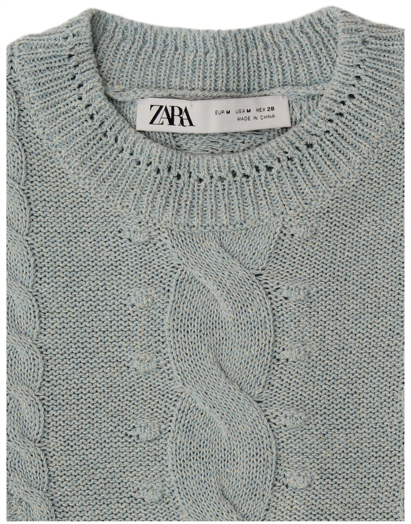 Maglione girocollo corto da donna ZARA UK 14 Blu medio