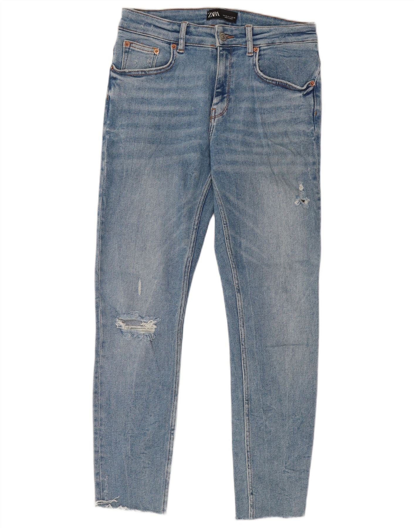 Jeans skinny effetto consumato corto ZARA da donna EU 40 medio W30 L26 cotone blu