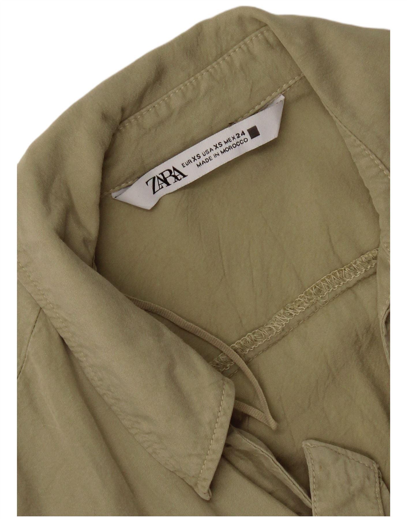 Zara Donna Camicetta Camicia Oversize con Cravatta Frontale Taglia UK 6 XS Cachi
