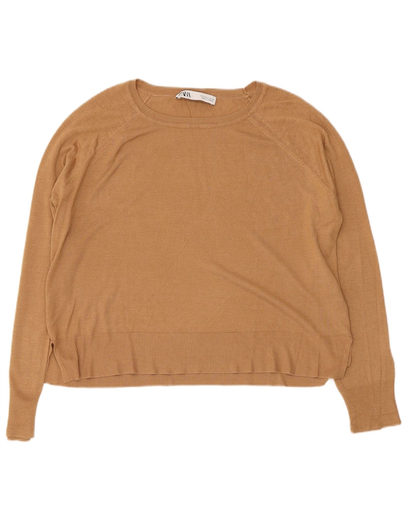 ZARA Maglione Corto da Donna Oversize con Scollo a Barca UK 10 Piccolo Marrone