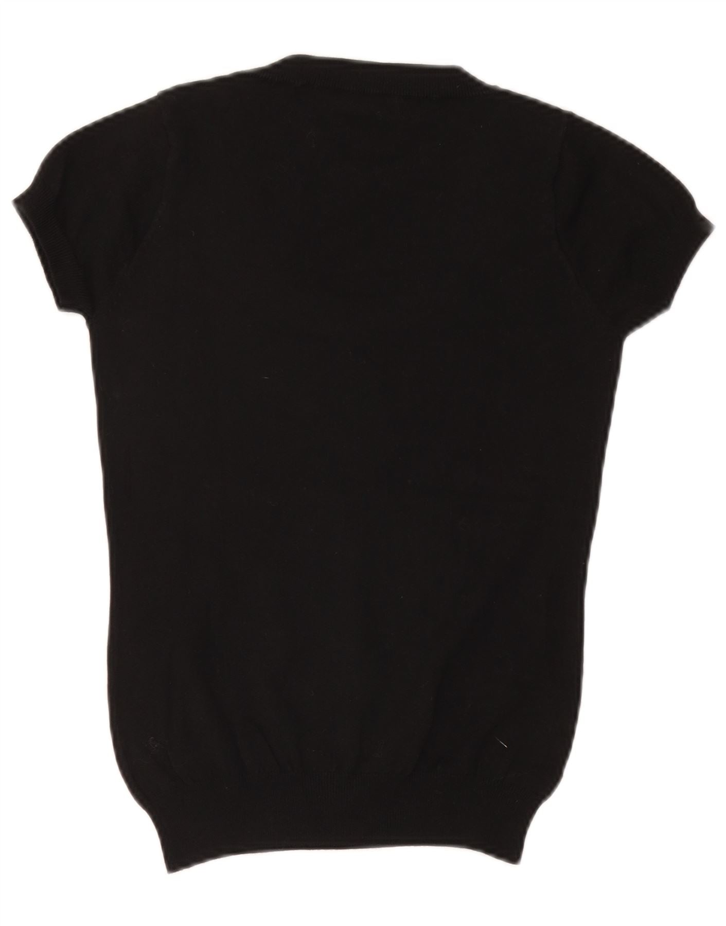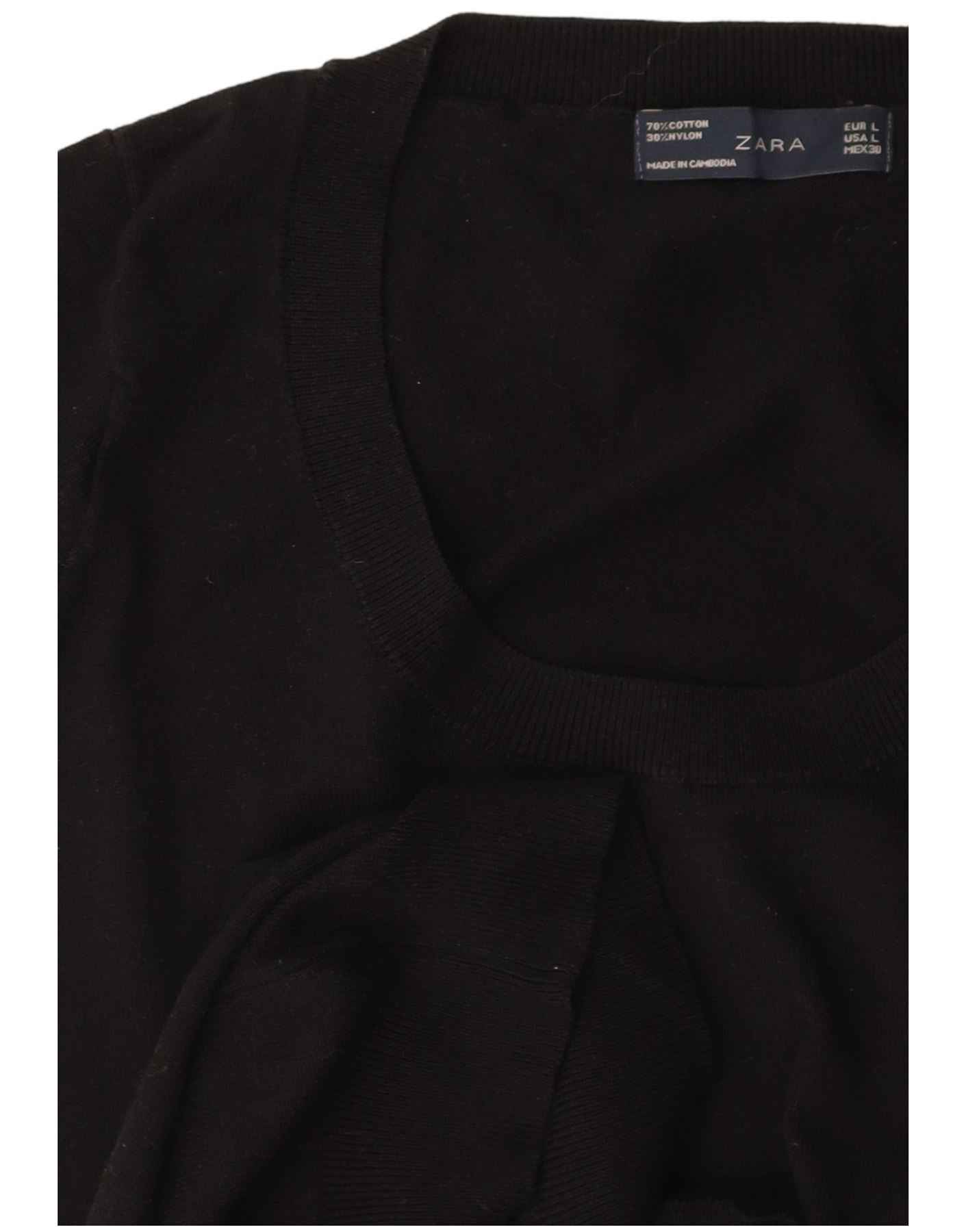 ZARA Maglione Corto da Donna con Scollo a Barca a Maniche Corte UK 14 Large Nero