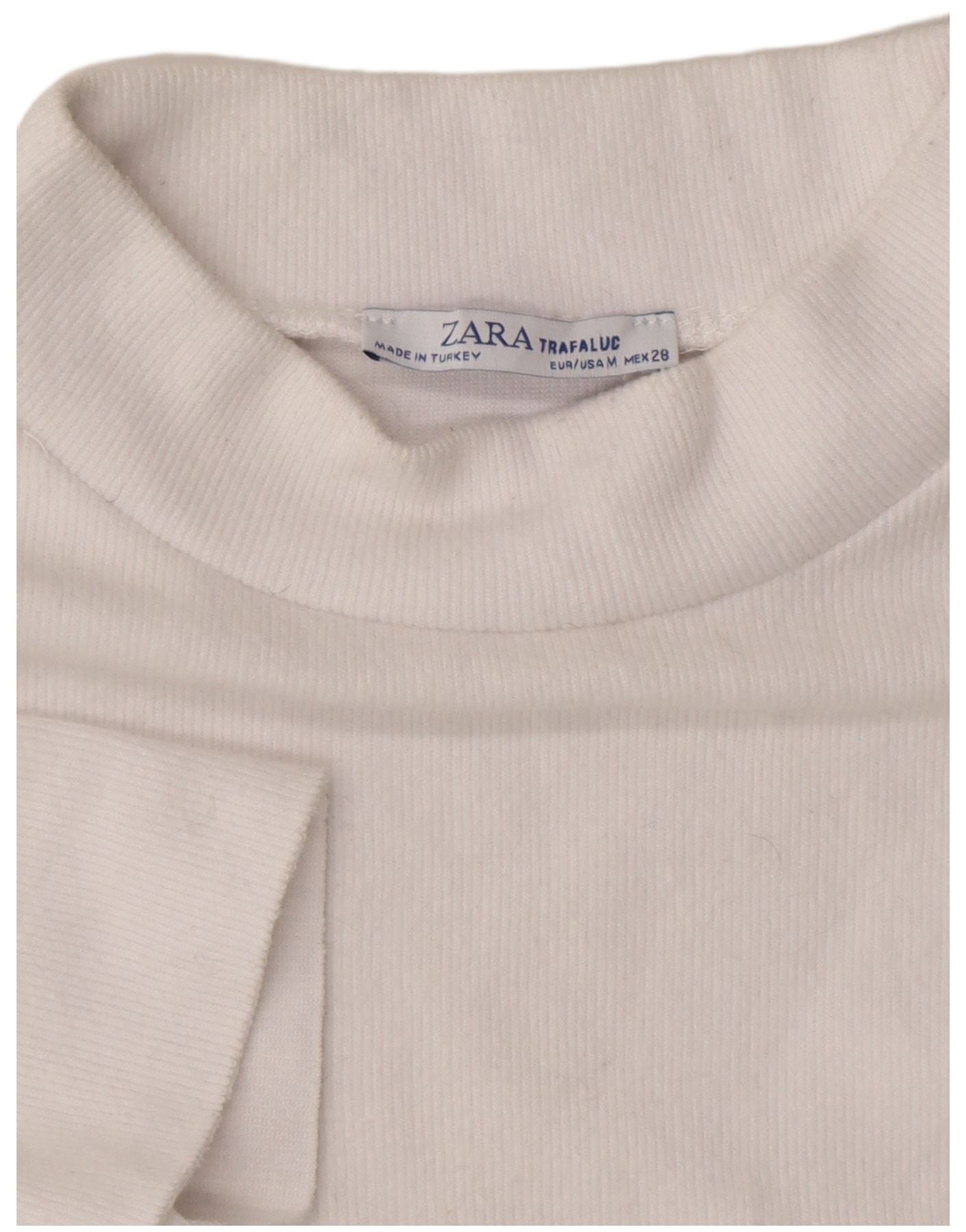 - Descrizione dell'IA: Questa maglietta da donna Zara è realizzata in morbido tessuto a maglia bianca, che offre una consistenza confortevole. Presenta un moderno collo a lupetto e maniche corte. La lunghezza corta fornisce una silhouette contemporanea. Il design di questo maglione offre un'estetica pulita e minimalista. La vestibilità regolare garantisce facilità d'uso, rendendolo un capo versatile del guardaroba.