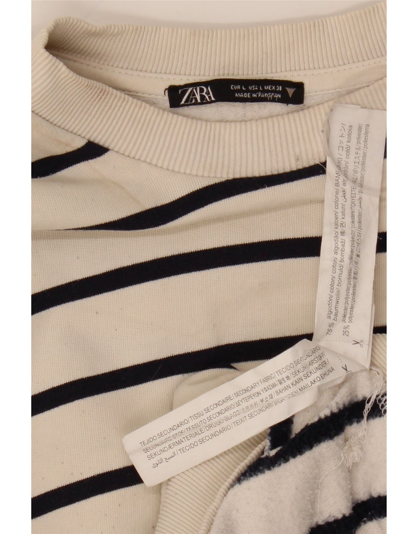 Felpa corta da donna ZARA, maglione UK 16, cotone a righe grandi bianche