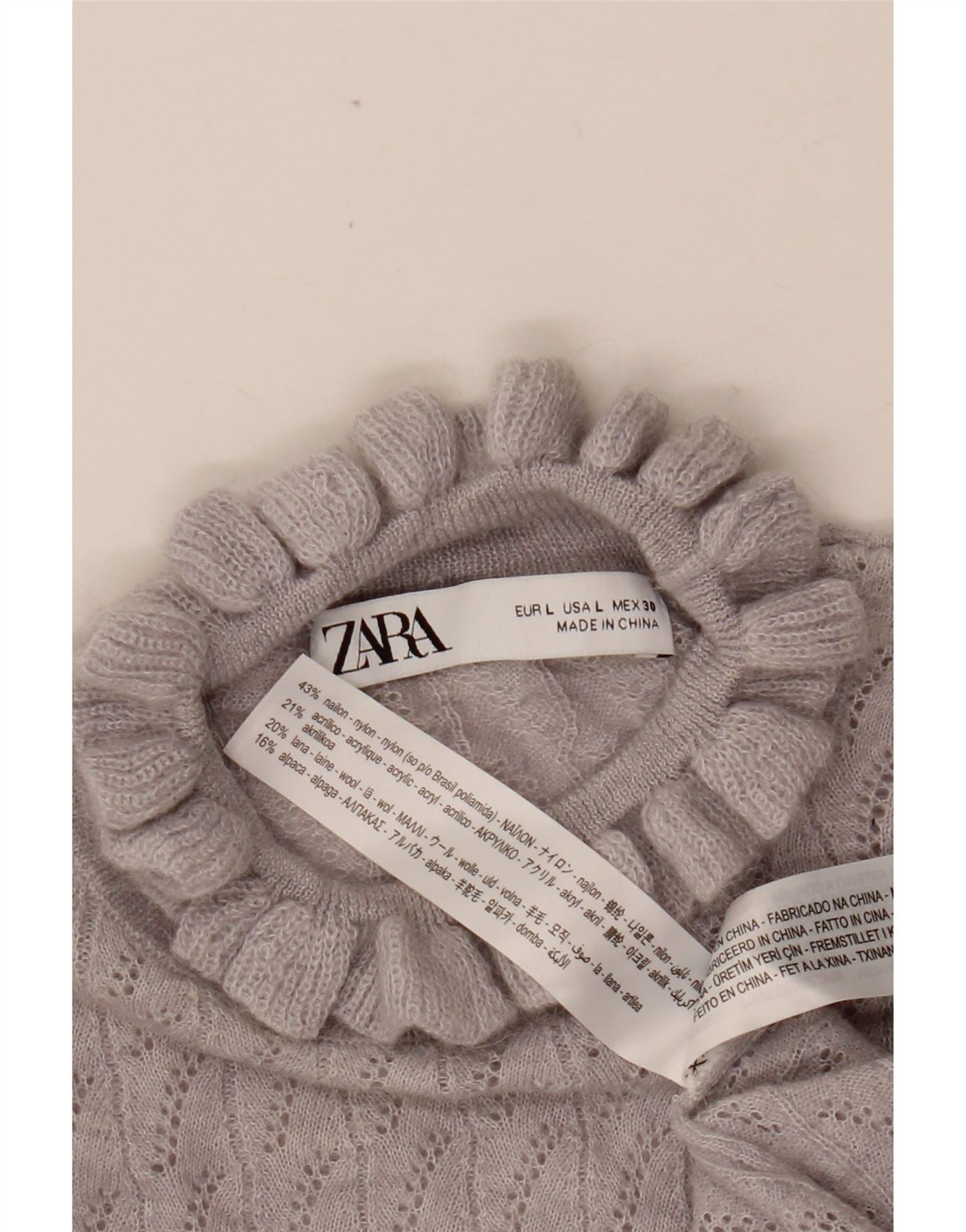 ZARA Maglione Corto da Donna con Collo Dolcevita UK 14 Grande Nylon Viola