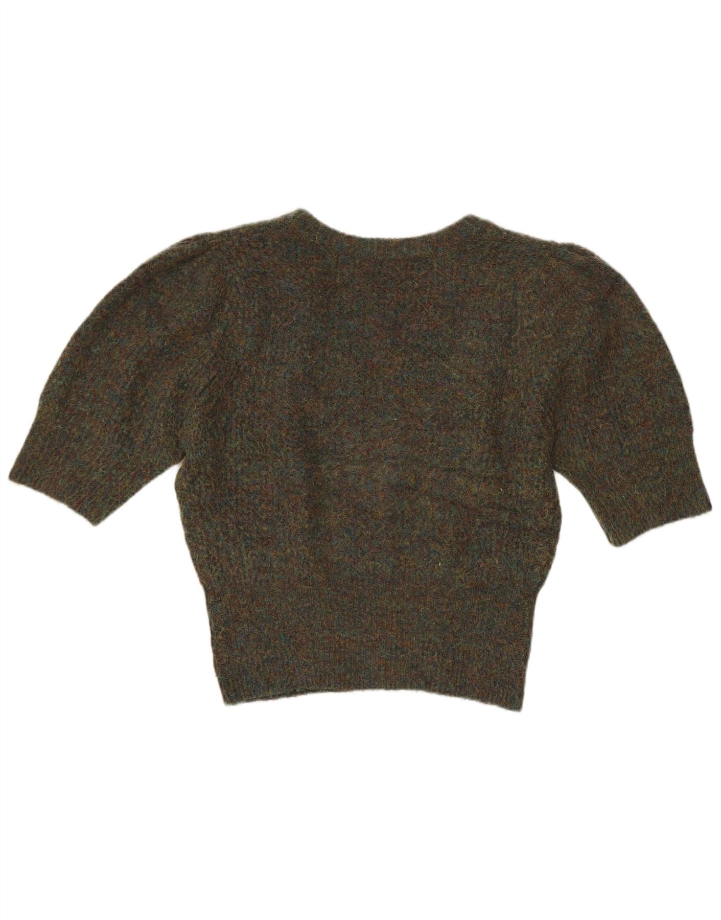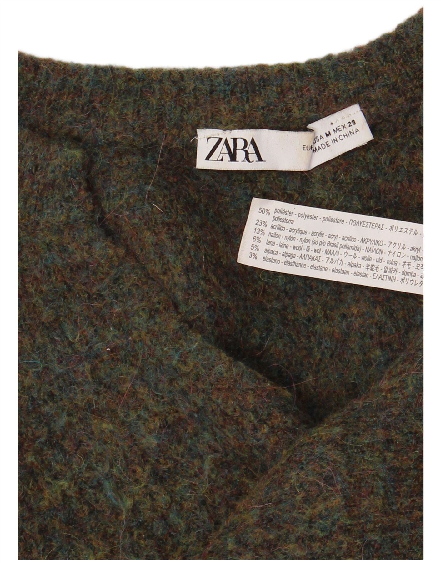 Maglione corto con scollo a V da donna Zara UK 14 medio kaki screziato
