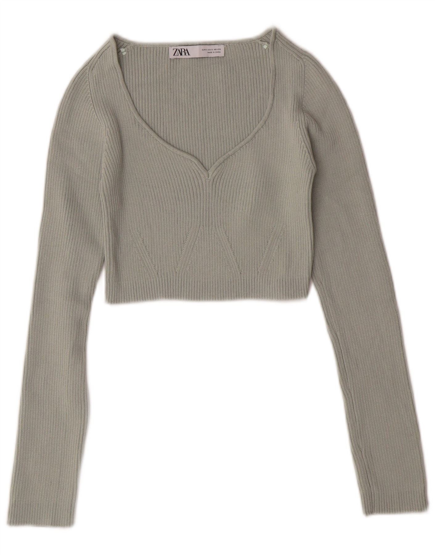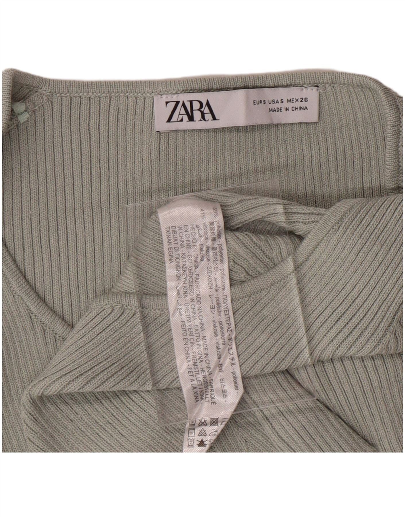 Maglione ZARA da donna corto con scollo a V UK 8 piccolo poliestere verde