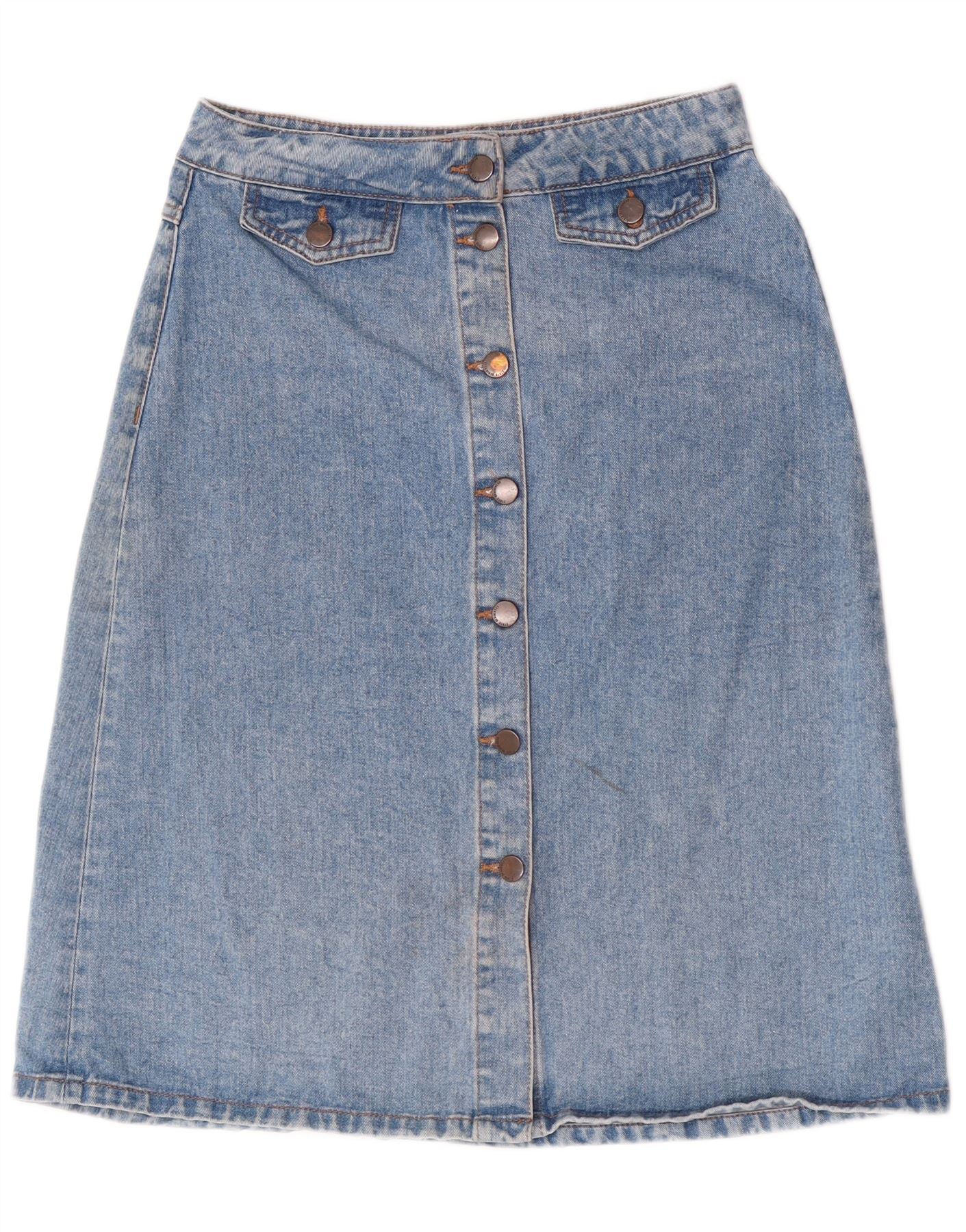 - Descrizione dell'IA: Questa gonna in denim da donna Zara è realizzata in Heritage Denim blu, offrendo una sensazione classica e resistente. Presenta una vestibilità regolare e una silhouette a trapezio, che cade a una lunghezza midi. La parte anteriore è fissata con una chiusura completa a bottoni. Pratiche tasche sono incluse nella parte anteriore e posteriore. Gli accenti dei bottoni aggiungono un tocco tradizionale a questo pezzo senza tempo.
