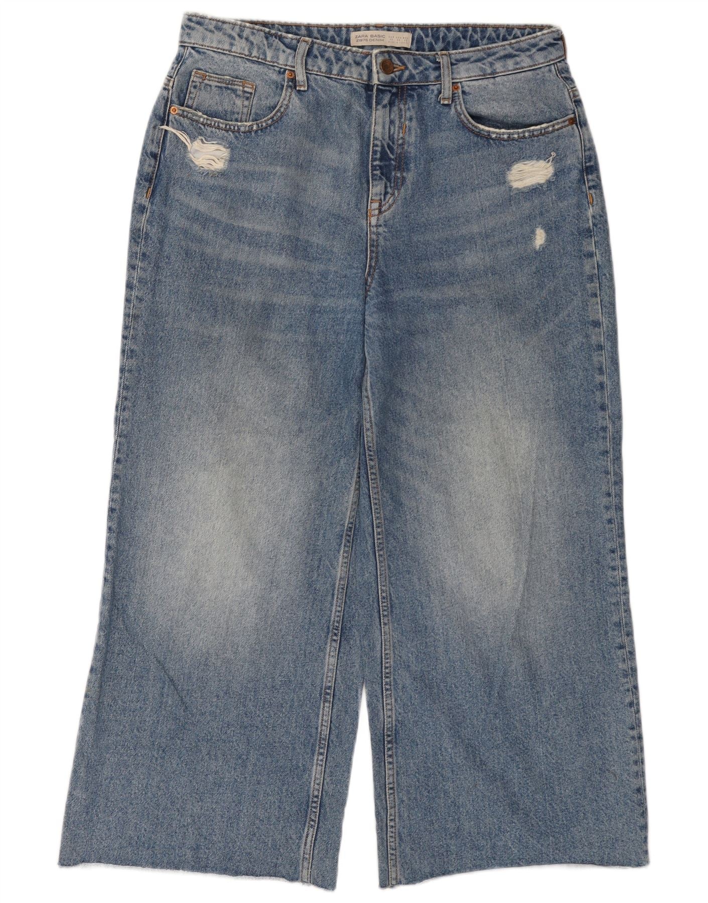 Jeans ZARA da donna a gamba larga con taglio invecchiato EU 40 medio W30 L25 blu