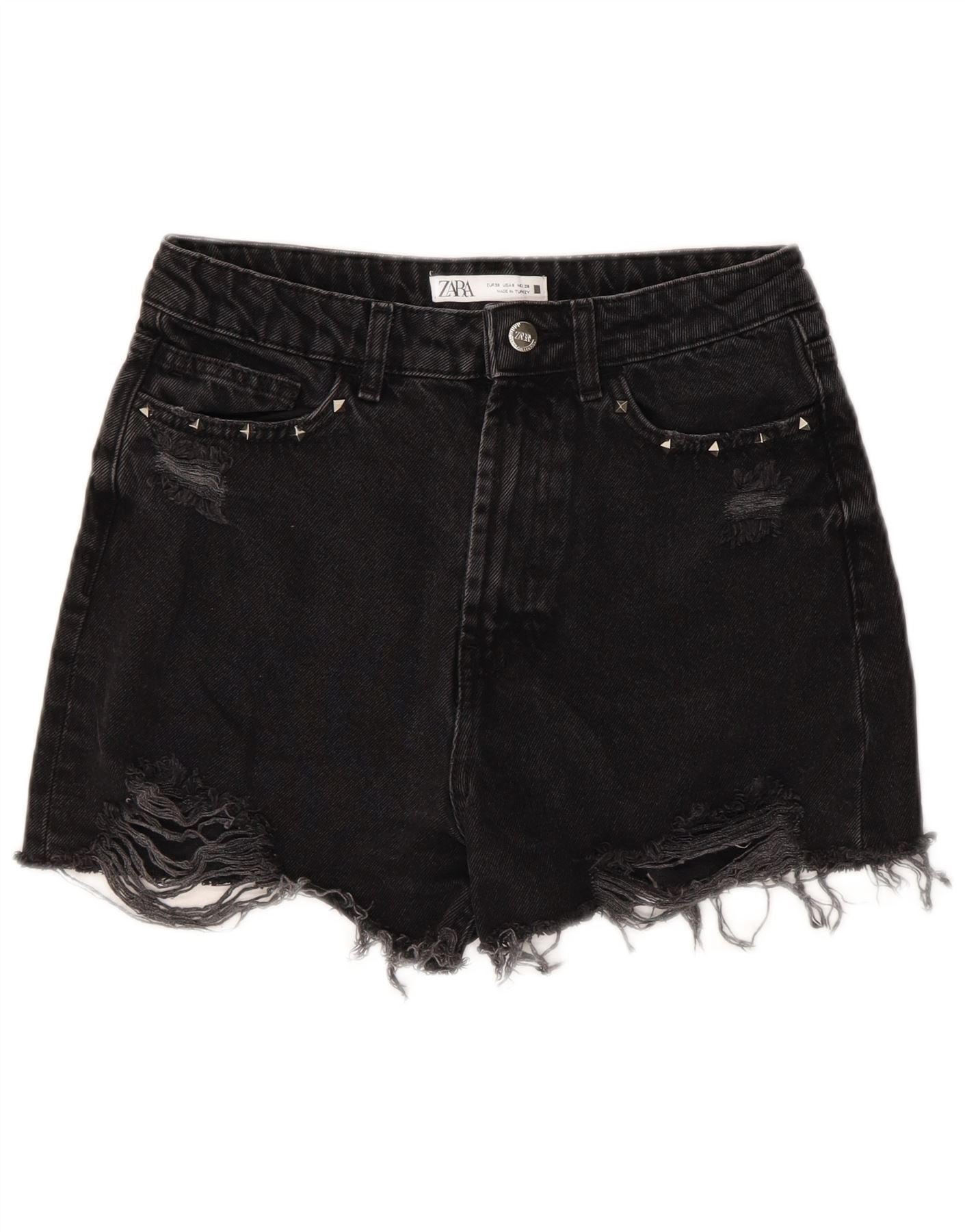 Pantaloncini in denim invecchiato ZARA da donna EU 38 piccoli W28 neri