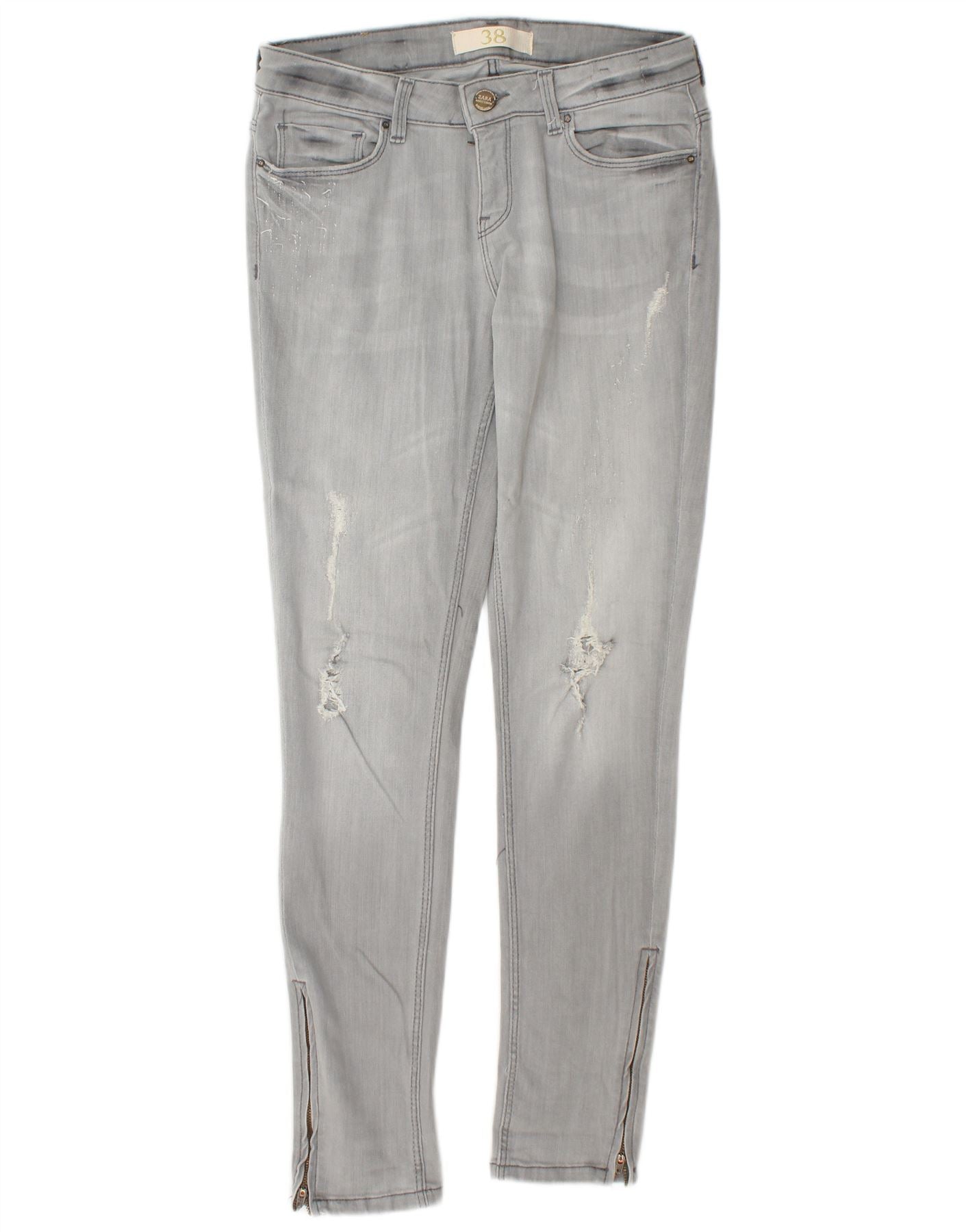 Jeans skinny effetto invecchiato ZARA da donna EU 38 piccolo W28 L30 cotone grigio