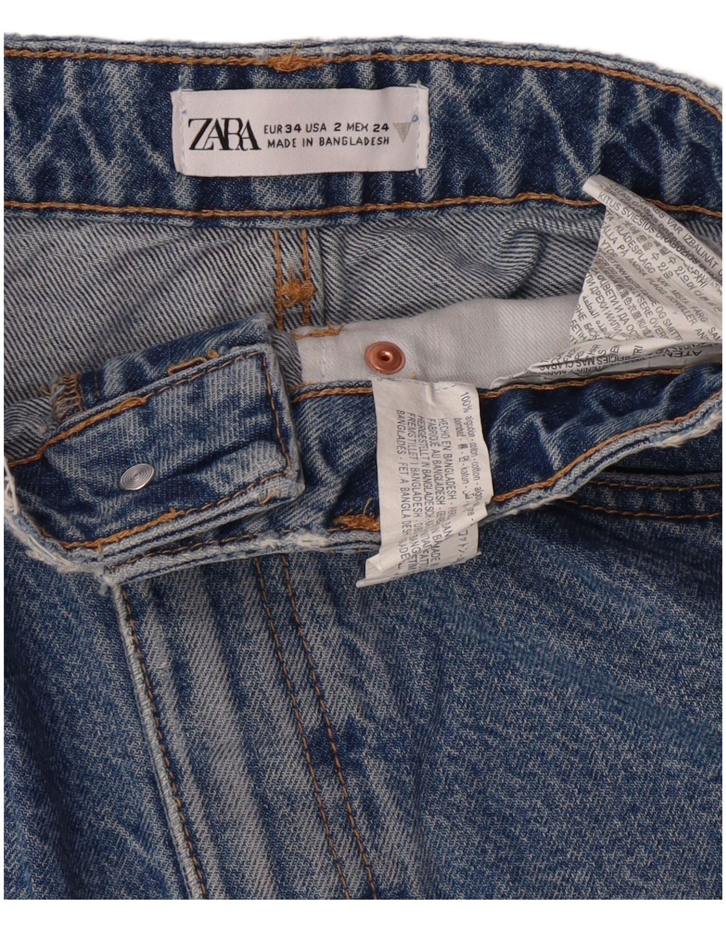 Pantaloncini di jeans a vita alta da donna Zara EU 34 2XS W24 cotone blu classico