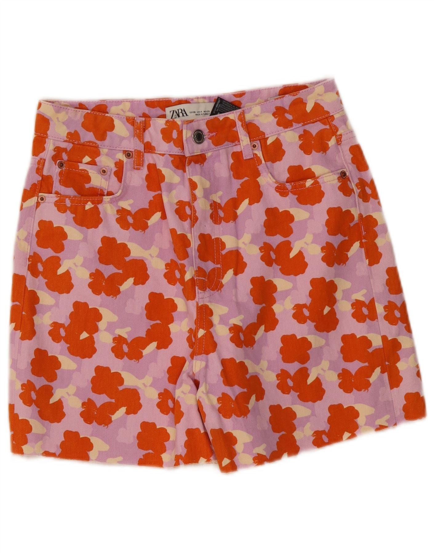 Pantaloncini di jeans a vita alta da donna ZARA EU 36 piccoli W26 multicolore floreale
