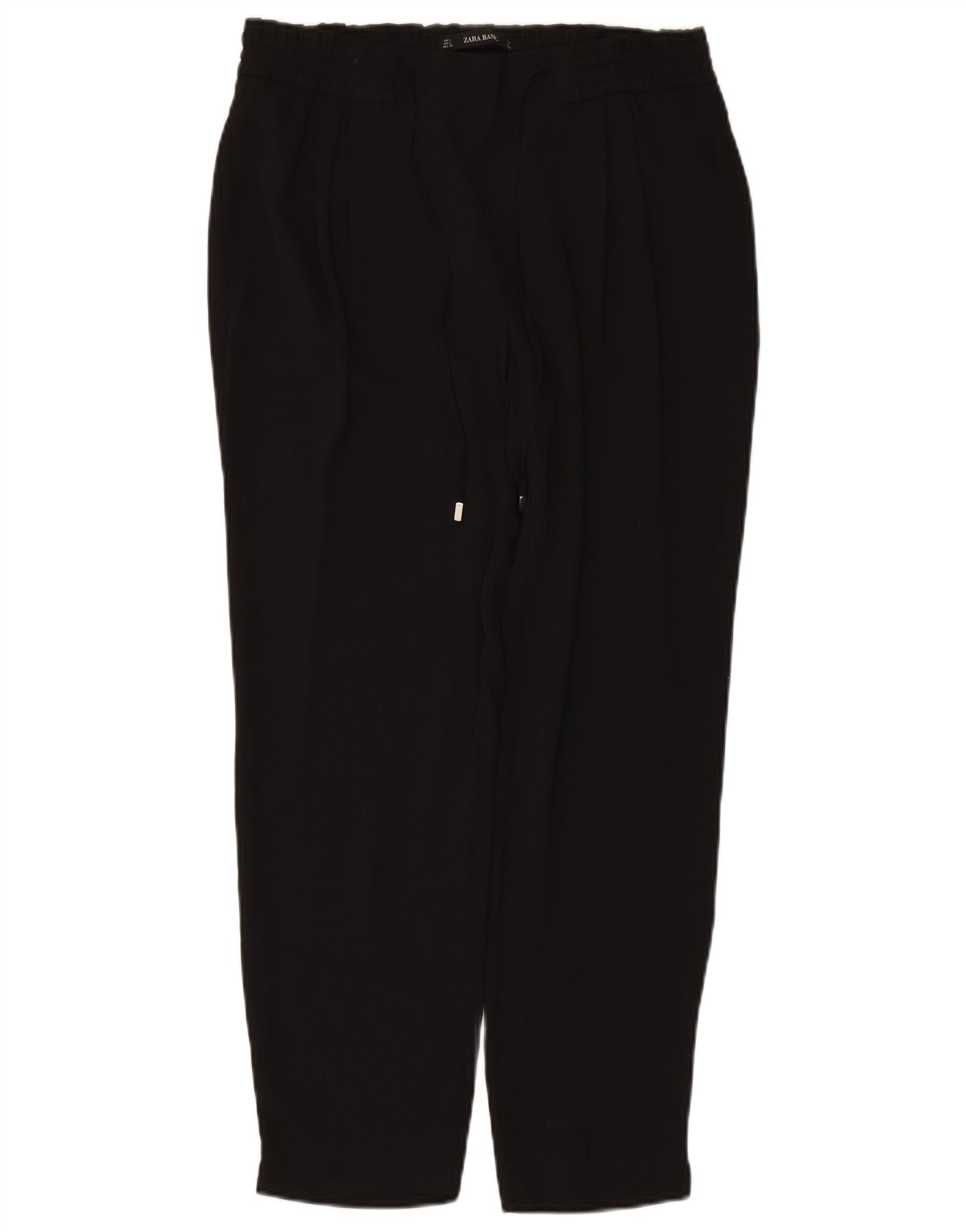 Pantaloni corti affusolati a vita alta da donna ZARA UK 16 Large W34 L27 neri