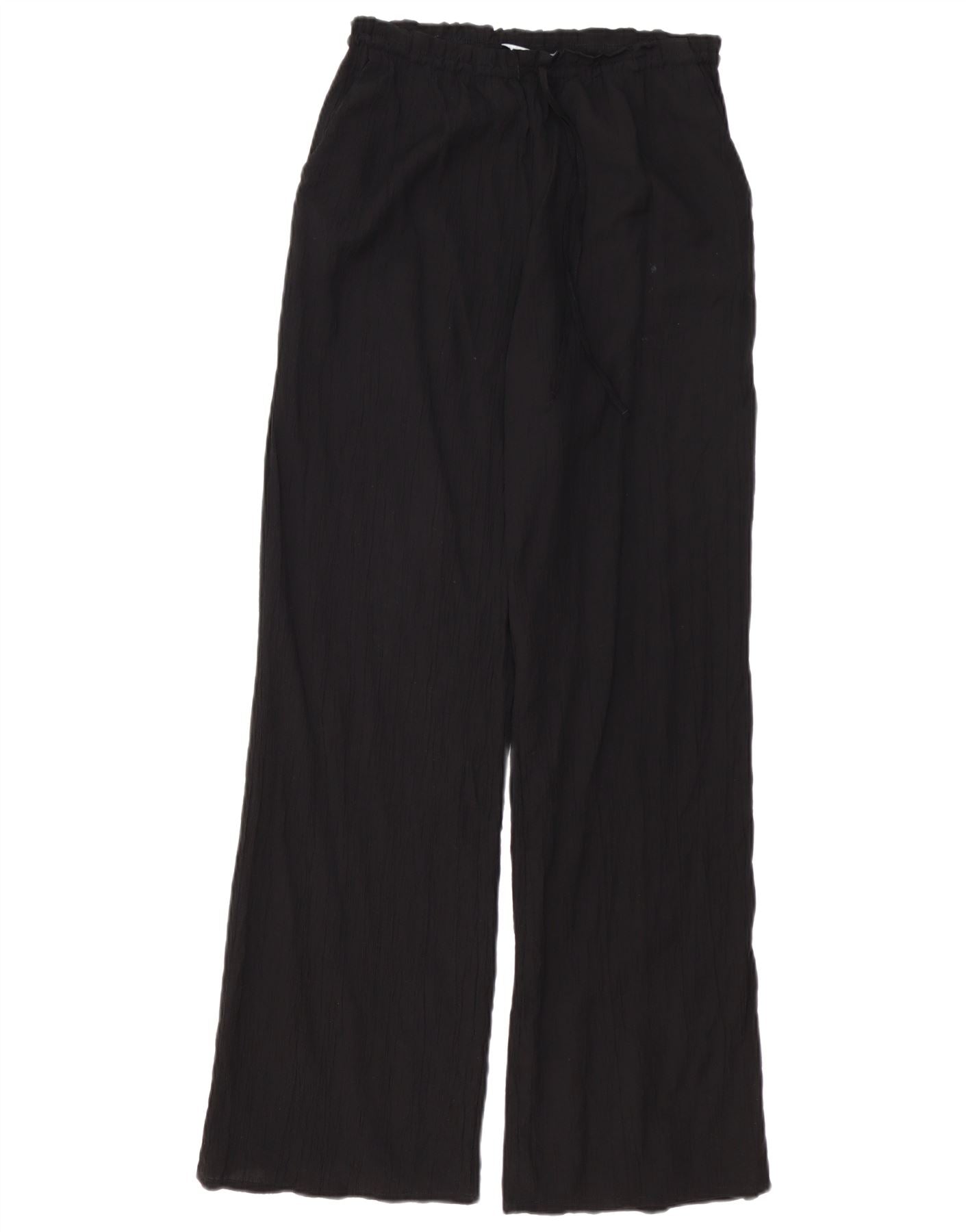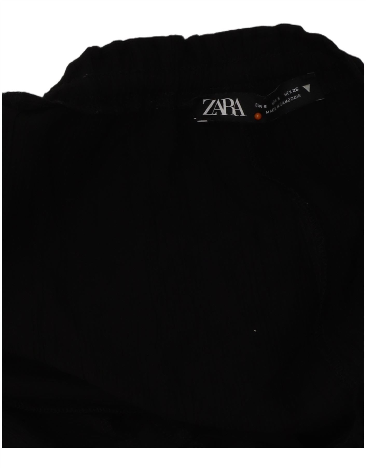 Pantaloni ZARA da donna a vita alta a gamba larga UK 10 piccoli W26 L32 neri