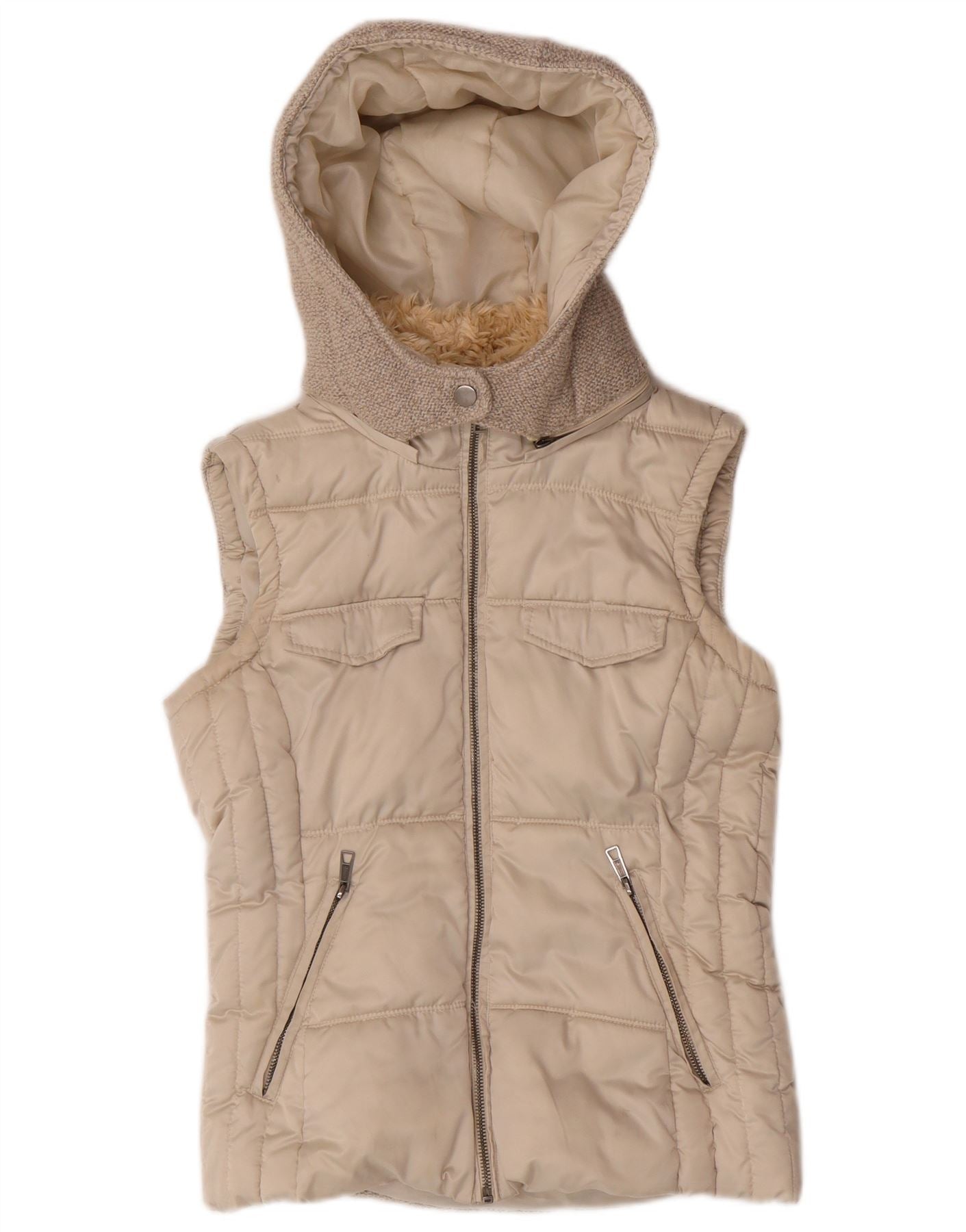 Gilet imbottito con cappuccio da donna Zara UK 10 piccolo poliestere beige