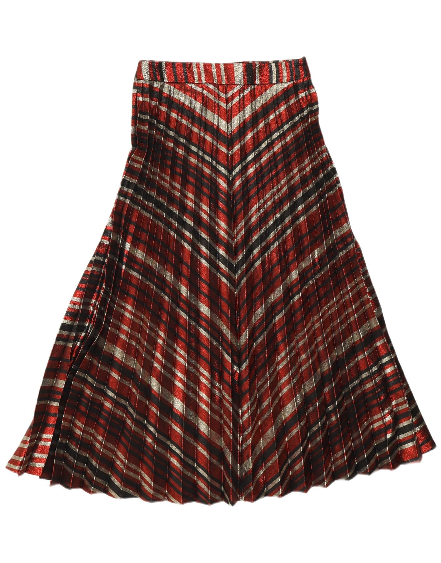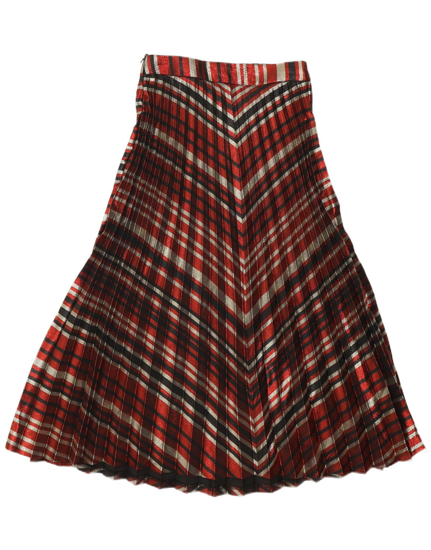 - Descrizione dell'IA: Questa gonna a pieghe da donna di Zara presenta un sorprendente motivo scozzese multicolore. Realizzato in tessuto intrecciato, presenta fili metallici per un sottile luccichio. L'elegante struttura plissettata garantisce un movimento aggraziato e una silhouette lusinghiera. Il suo comodo design pull-on offre un'usura senza sforzo. Questa gonna dalla vestibilità regolare offre uno stile versatile per ogni occasione.