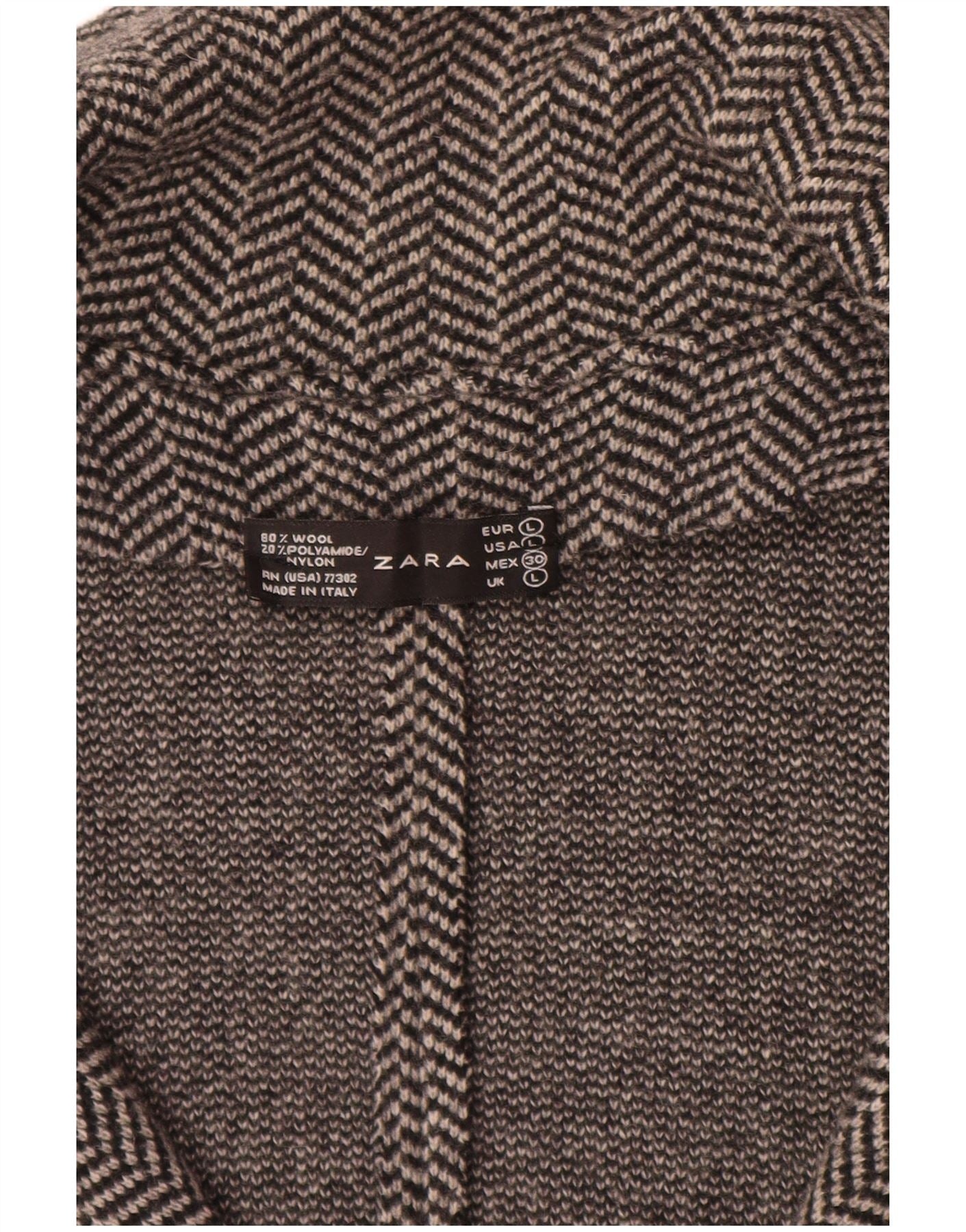 Giacca Blazer in Maglia da Donna ZARA UK 14 Large Grigia a Spina di Pesce