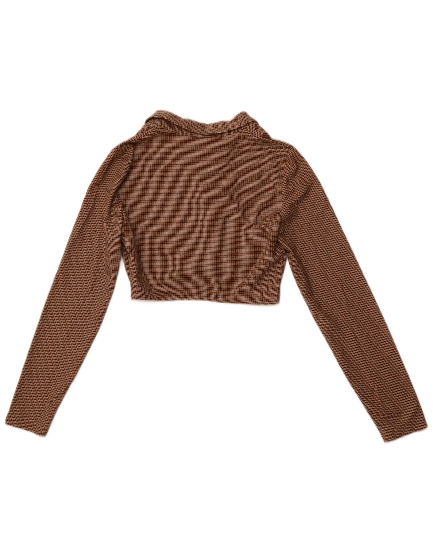 Top corto a maniche lunghe da donna ZARA UK 12 Poliestere pied de poule marrone medio