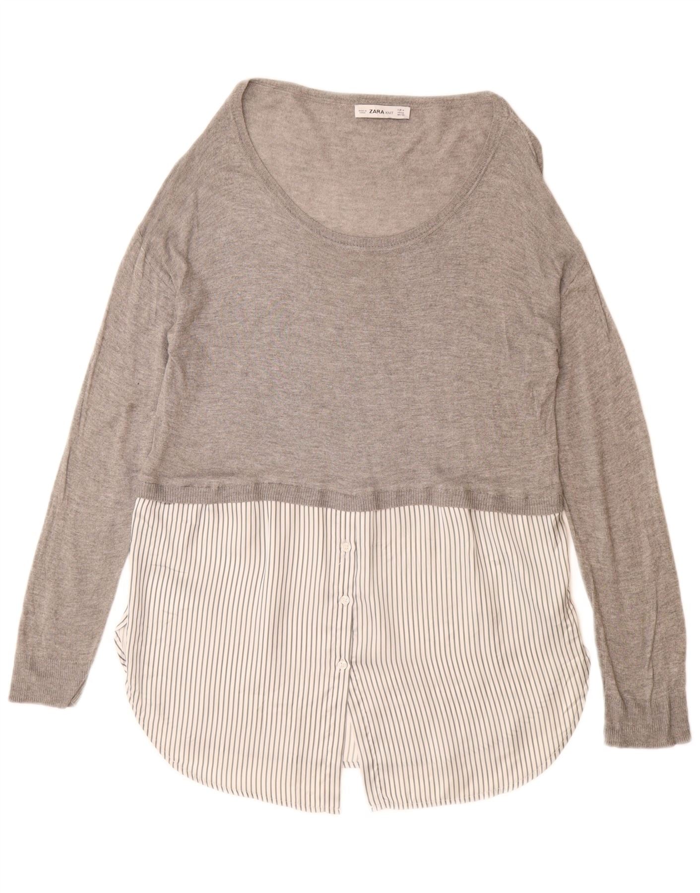 ZARA Maglione da Donna con Collo a Barca Lungo e Collo a Barca UK 14 Viscosa Grigio Medio
