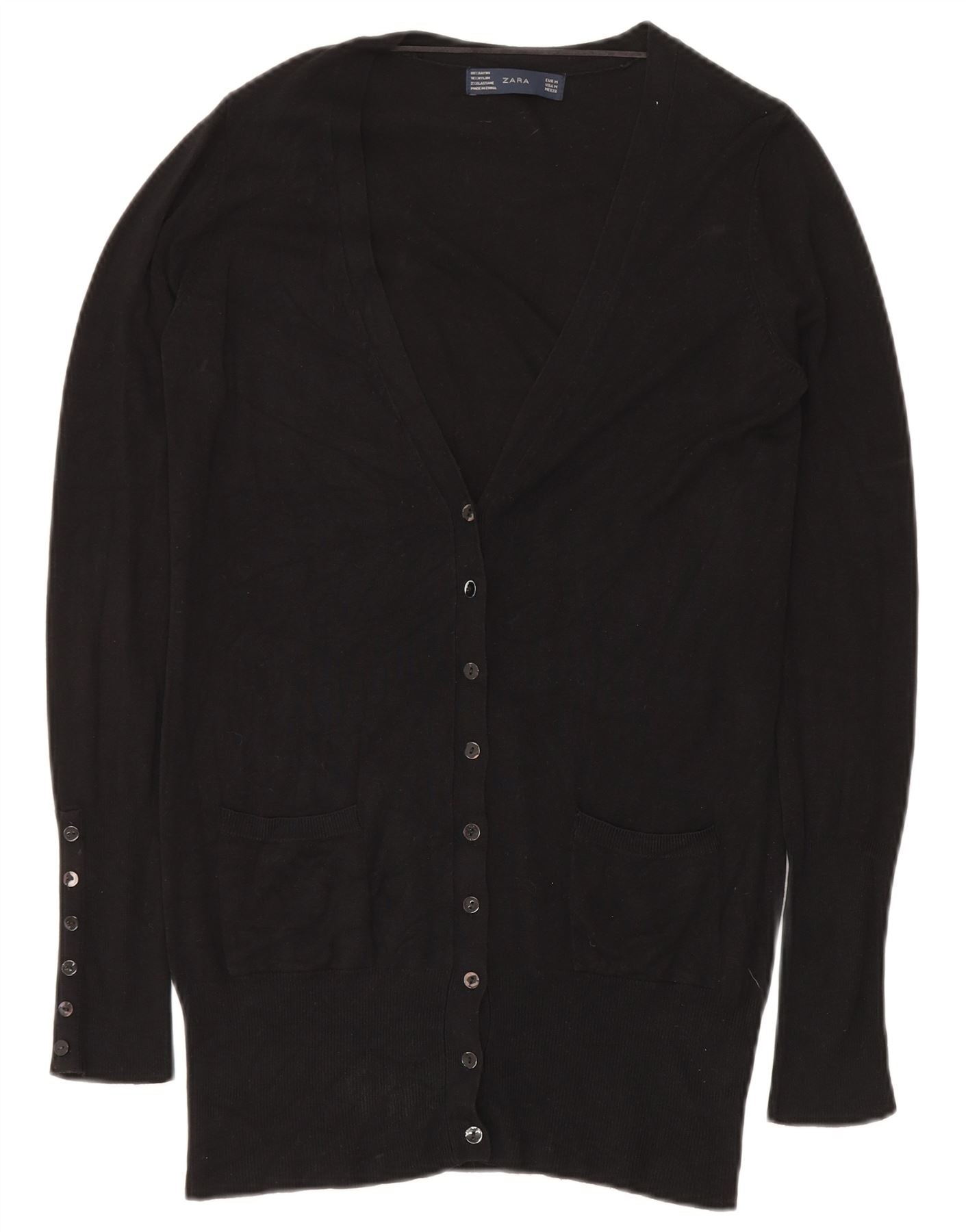 Maglione cardigan lungo da donna ZARA UK 14 Rayon nero medio