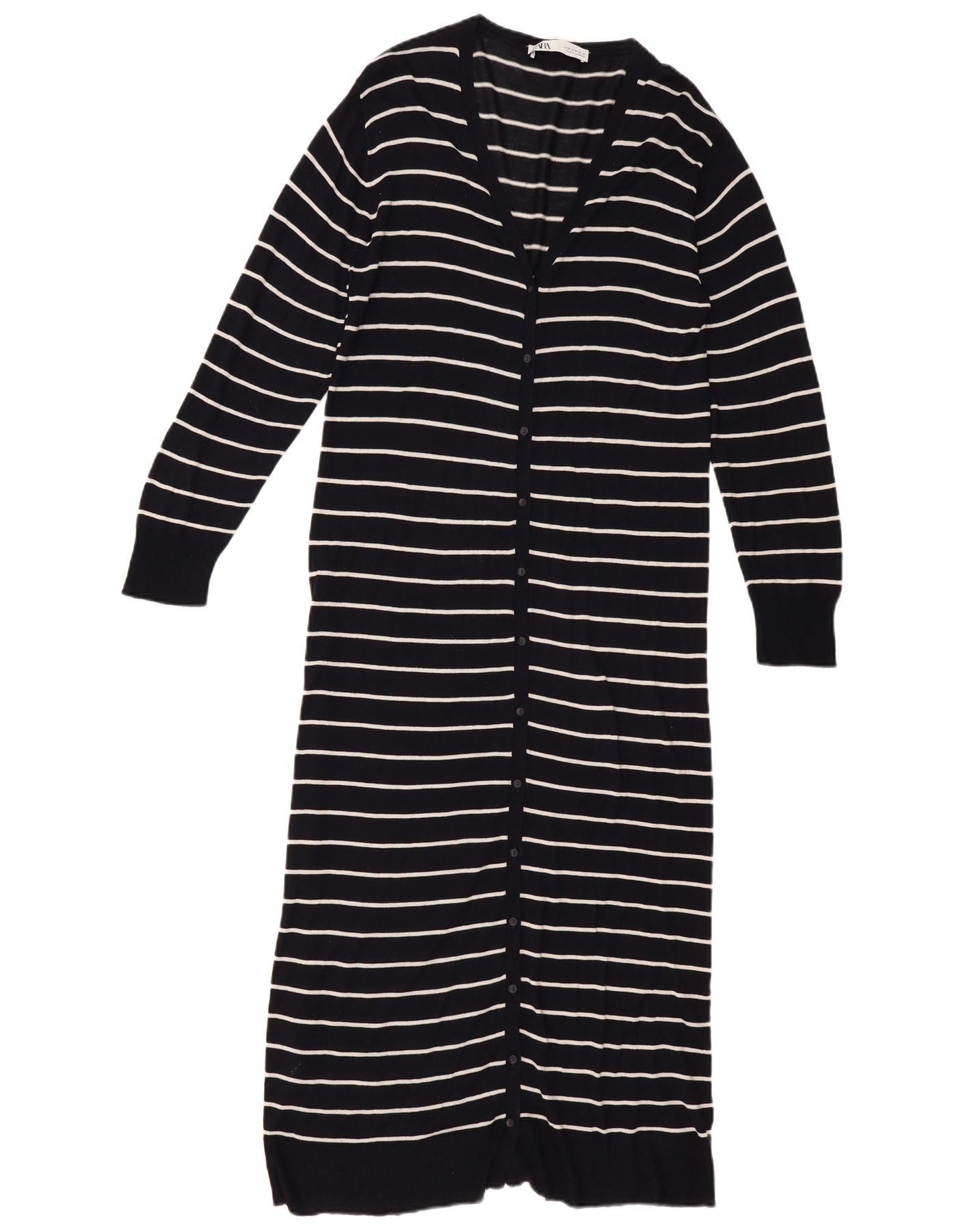 Maglione cardigan lungo da donna Zara UK 14 Viscosa a righe nere medie