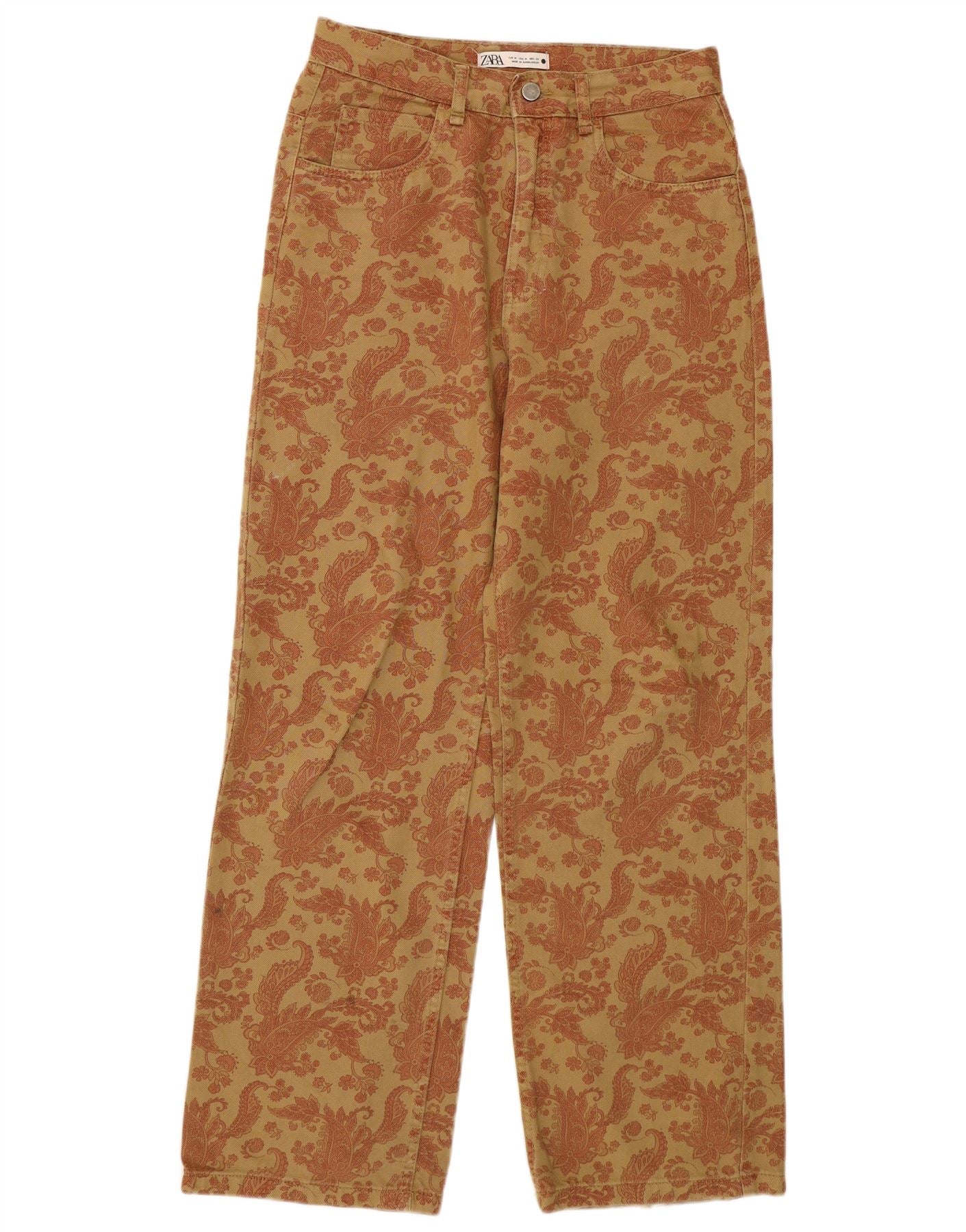 Pantaloni casual larghi da donna Zara medi W28 L30 marrone Paisley