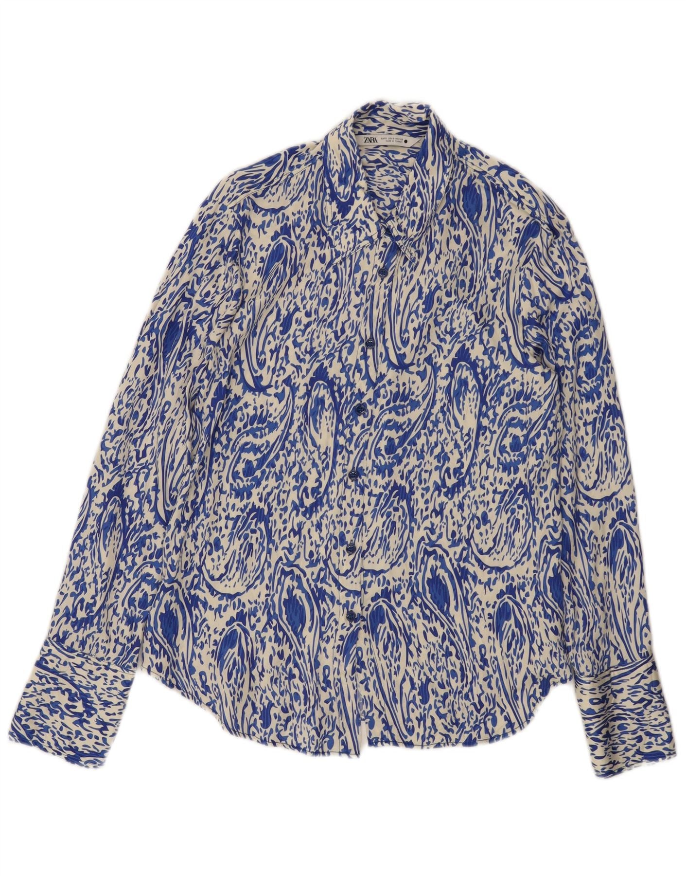 Camicia Zara da donna vestibilità ampia UK 10 piccolo blu Paisley