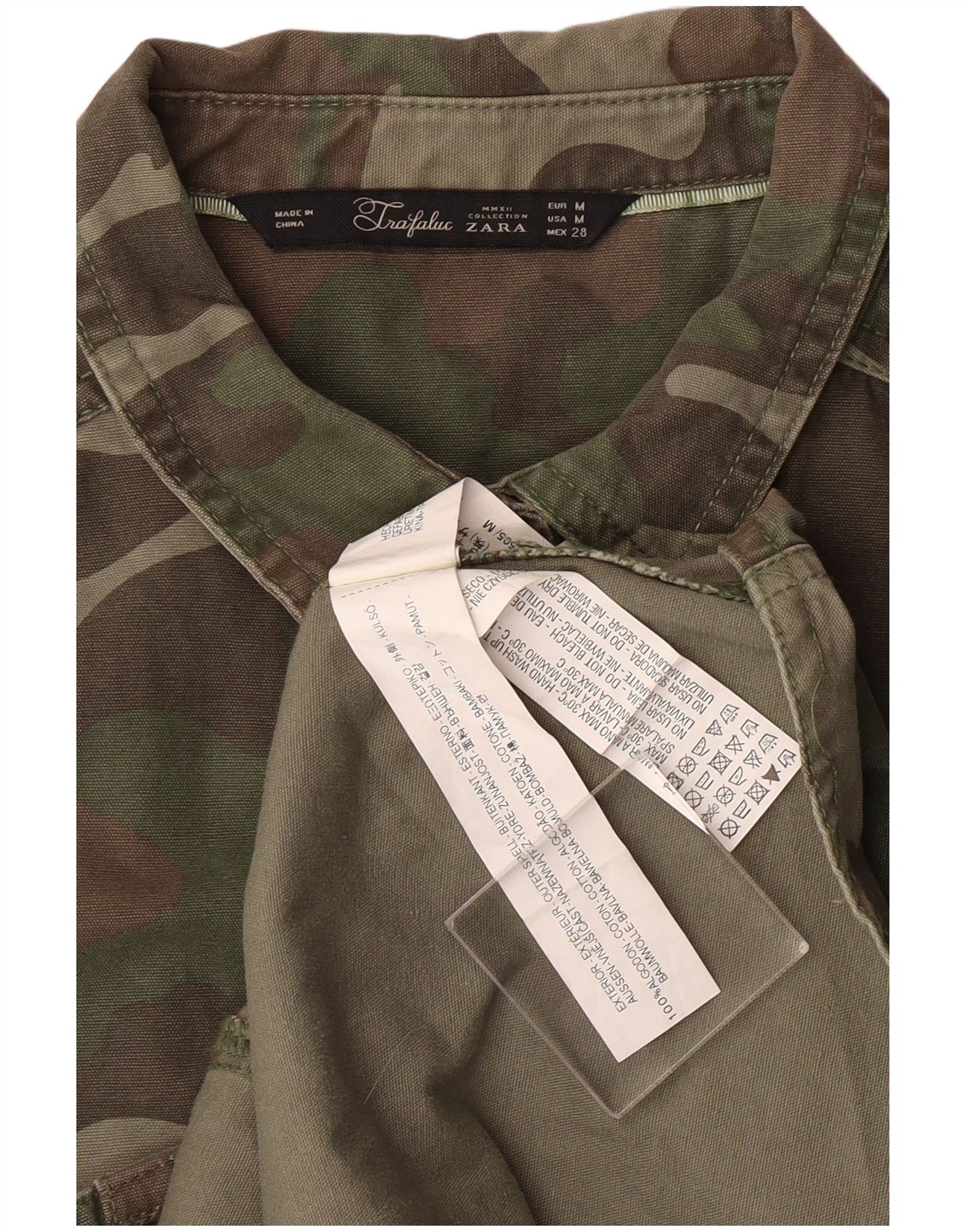 Camicia militare da donna ZARA UK 12 cotone mimetico kaki medio