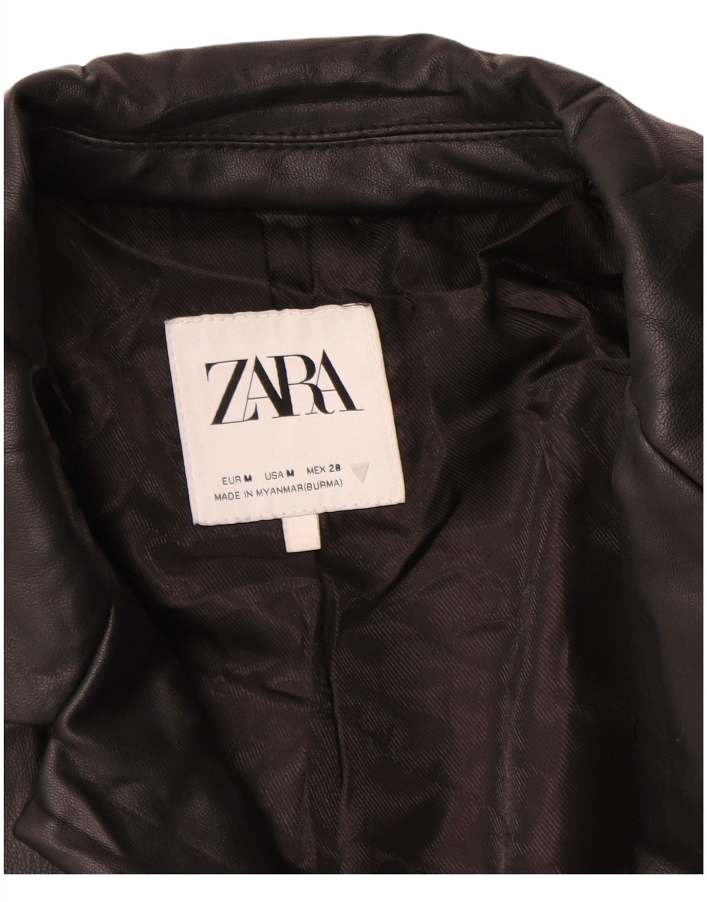 - Descrizione dell'IA: Questa giacca blazer da donna Zara è realizzata in elegante ecopelle nera. Presenta un classico scollo con colletto e una chiusura a bottone singolo per un look raffinato. Le maniche lunghe e la vestibilità regolare offrono una vestibilità comoda. La giacca include pratiche tasche ed è completamente foderata, fondendo lo stile classico con dettagli moderni.