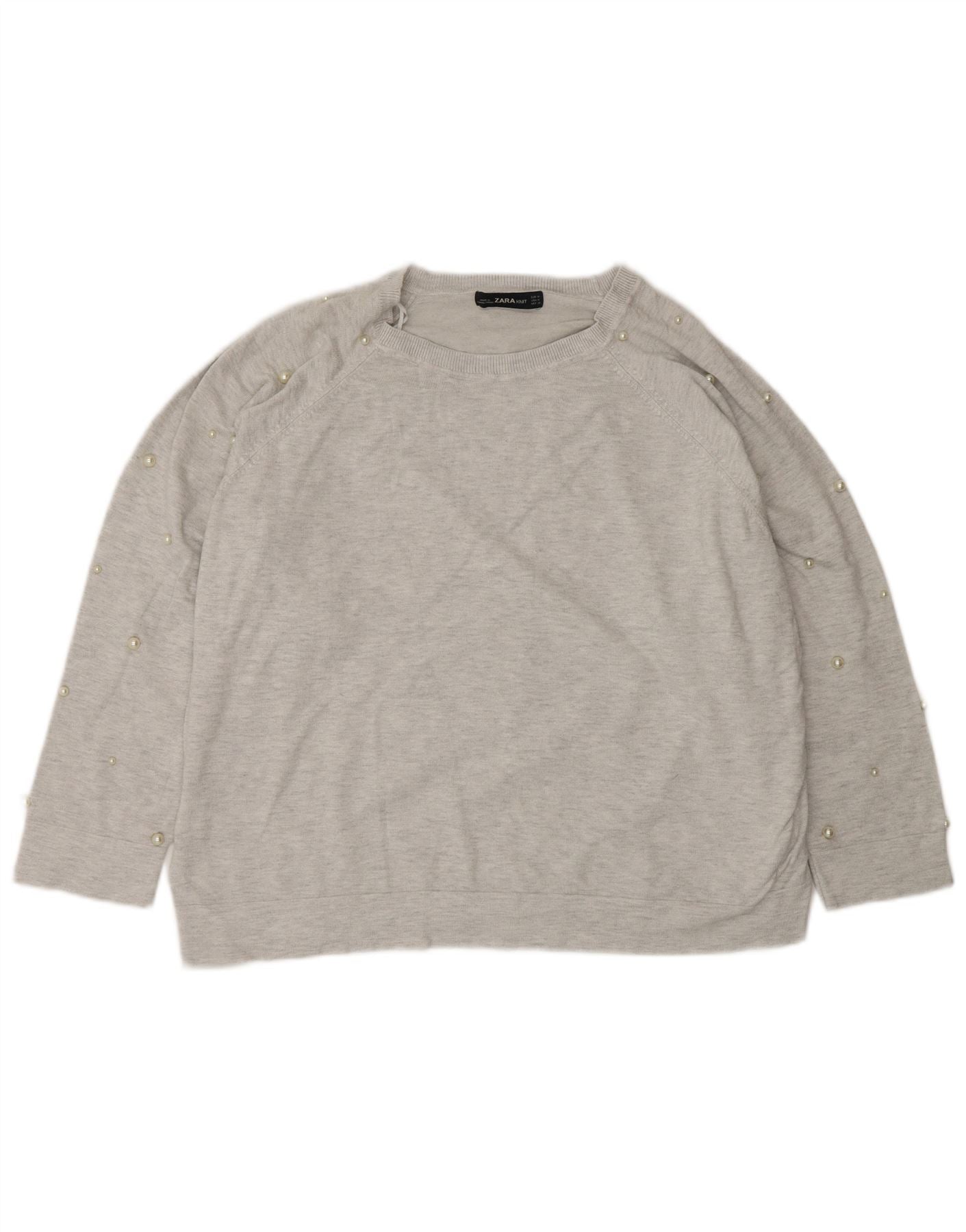 Maglione ZARA da donna oversize con scollo a barca UK 14 Grigio medio