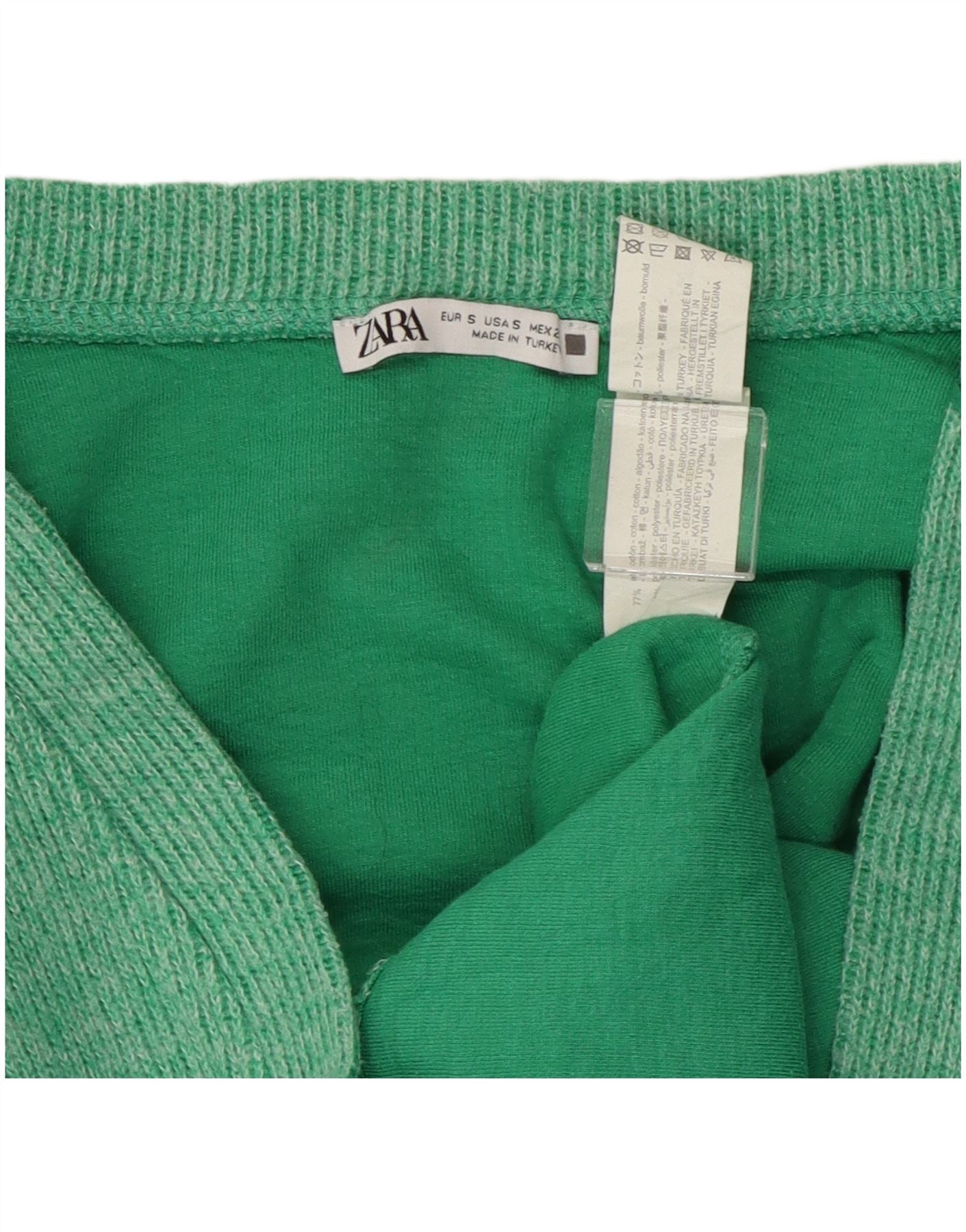ZARA Maglione Cardigan Corto Oversize da Donna UK 10 Piccolo Cotone Verde
