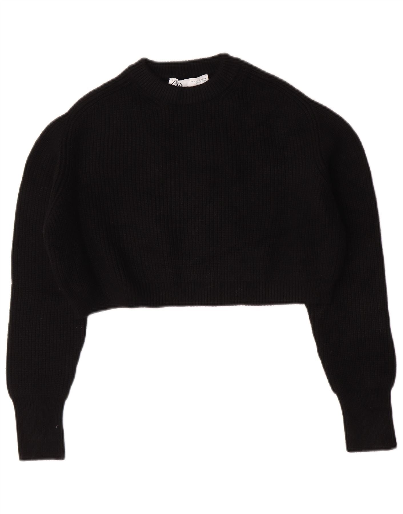 Maglione corto girocollo oversize da donna Zara UK 10 piccolo nero