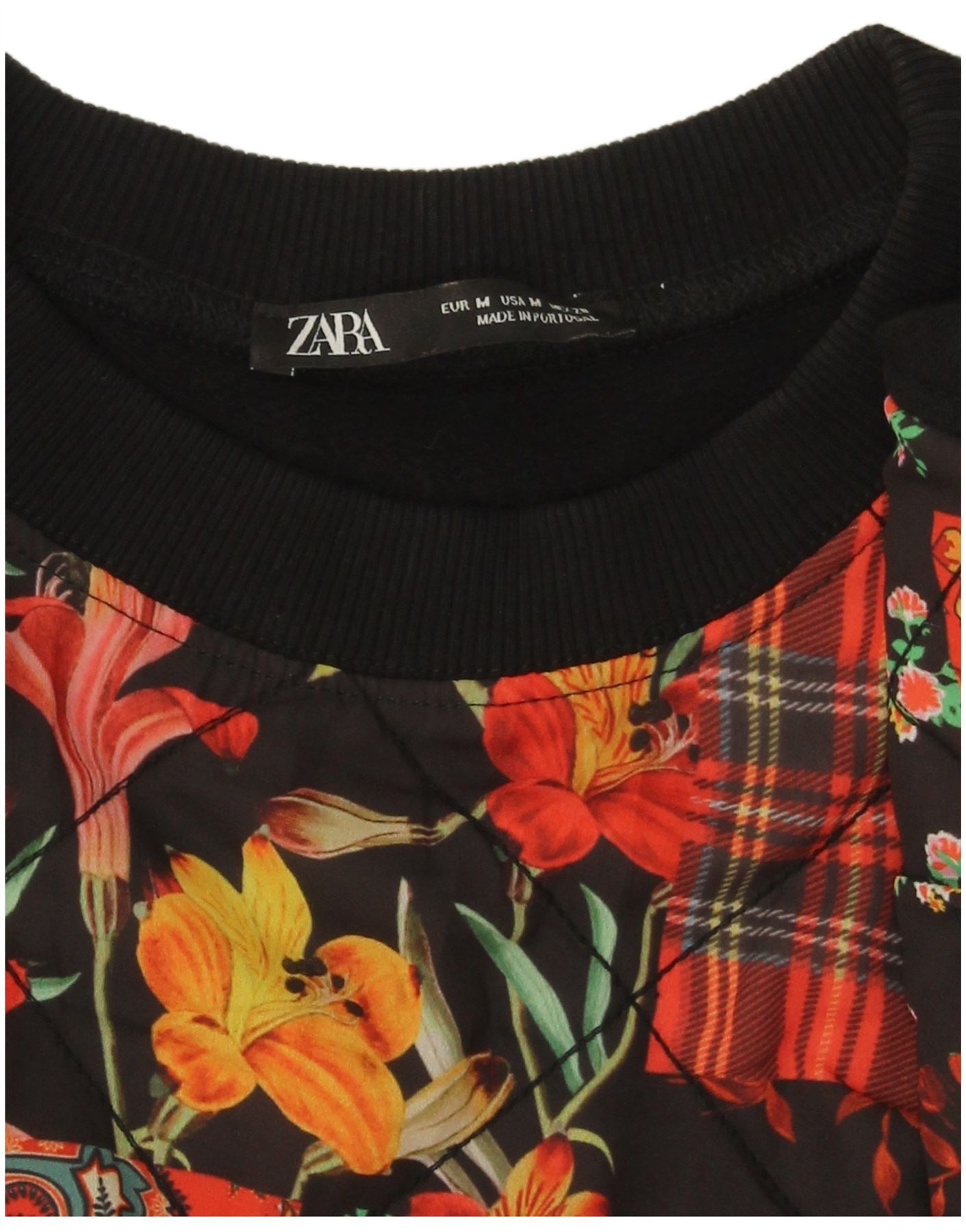 - Descrizione dell'IA: Questa felpa in felpa da donna Zara è realizzata in tessuto misto, caratterizzata da un design patchwork unico. I pannelli frontali sono trapuntati, aggiungendo texture e profondità. Ha un comodo girocollo e maniche lunghe. La vestibilità comoda e corta offre una silhouette moderna. Il vivace patchwork combina motivi floreali, scozzesi e a pois in uno stile retrò. Le sezioni nere forniscono contrasto e struttura.